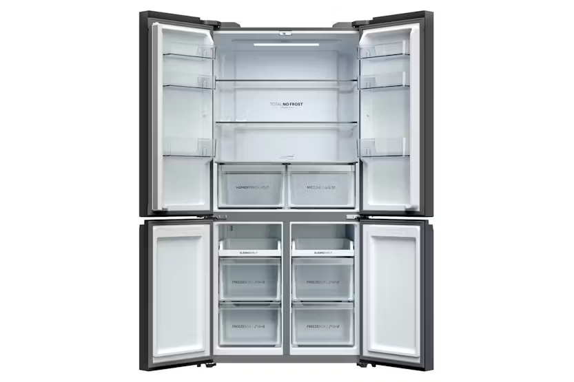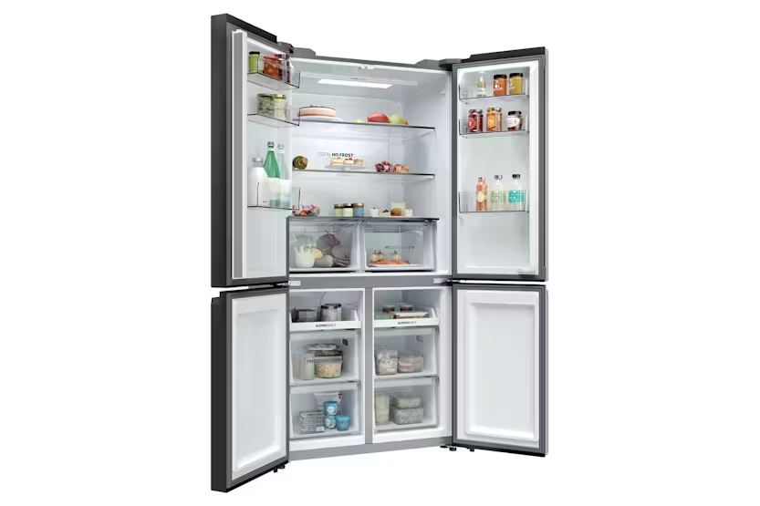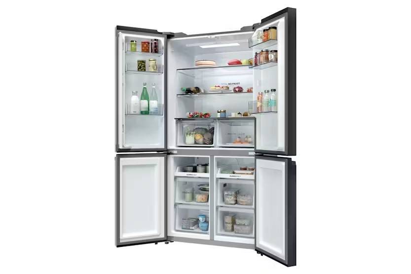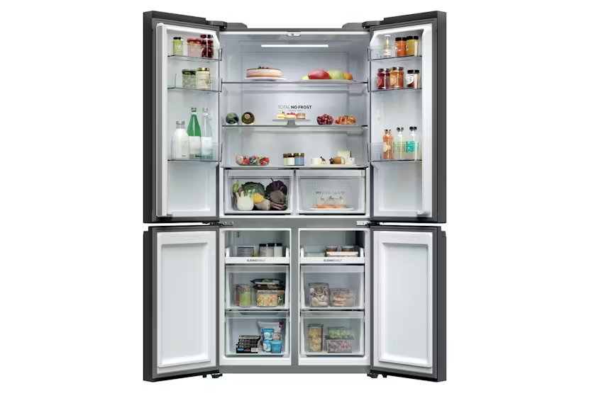 Upgrade your kitchen with the Haier Cube 90 Series 3 Multi Door Fridge Freezer, featuring a sleek design and advanced technology for optimal food preservation. With Haier's exclusive T-ABT system, bacteria is eliminated, ensuring your food stays fresh longer. The customizable temperature zones, automatic water dispenser, and humidity control system keep your groceries at their best, while the Air Surround Fresher Tech maintains taste and juiciness up to 99% after 7 days. Plus, with the hOn app, you can access additional content and improve food care effortlessly. Experience energy efficiency and premium performance with the E Class Haier Cube 90 fridge freezer, offering a total capacity of 646 liters and a range of convenient features such as adjustable shelves, multiple door shelves, and specialized compartments for fruits, vegetables, and more. Upgrade to the Haier Cube 90 Series 3 for a superior refrigeration experience that keeps your food fresher for longer while reducing energy consumption by 20% compared to other models.