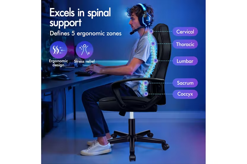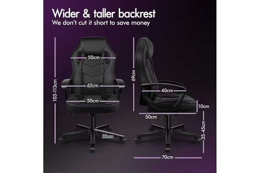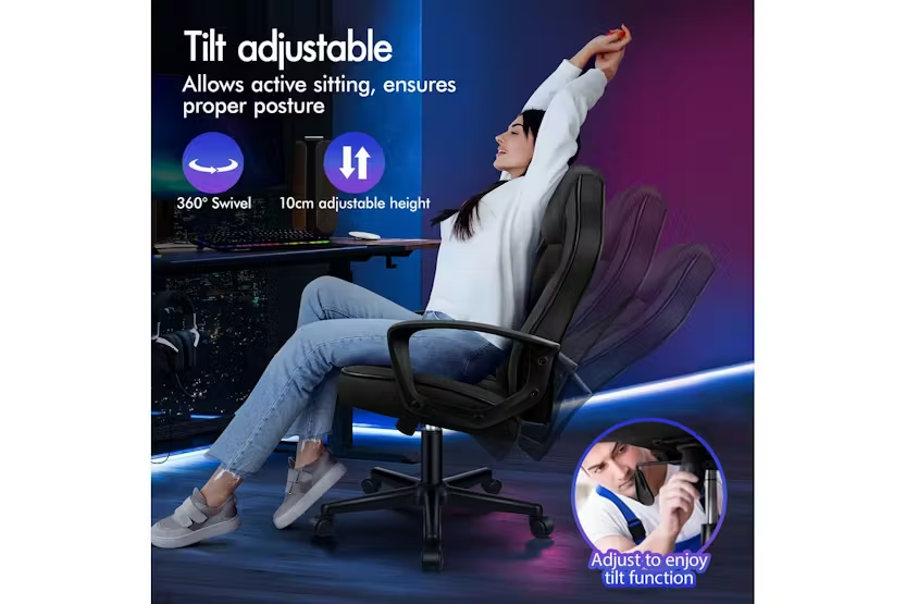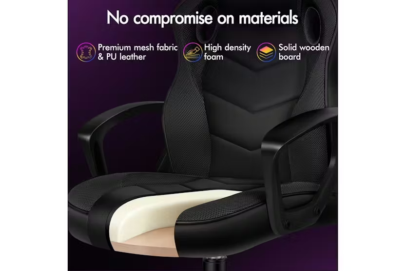 Experience ultimate comfort and luxury with the Elfordson Gaming Chair in sleek black. Crafted with a blend of premium PU leather and breathable mesh, this ergonomic chair offers superior support and flexibility for extended gaming or work sessions. With TÜV-certified wheels, BIFMA-certified materials, and SGS-certified gas-lift, this chair ensures safe and reliable operation, making it the perfect choice for your home office or gaming setup. Elevate your comfort and productivity with the Elfordson Gaming Chair today. Indulge in the perfect fusion of style and functionality with the Elfordson Gaming Chair. Featuring a high back design, adjustable tilt and swivel functions, and a weight capacity of 180kg, this chair is designed to enhance your gaming or work experience. Trust in Elfordson's superior materials and construction to provide you with the comfort and support you need for those long hours in front of the screen. Upgrade your seating experience with the Elfordson Gaming Chair and feel the difference for yourself.