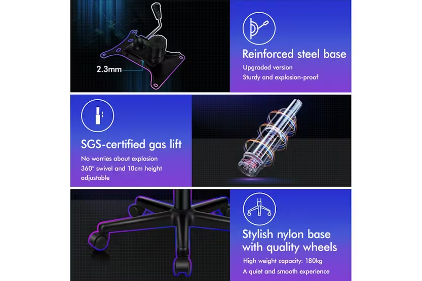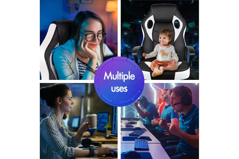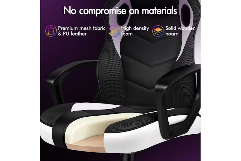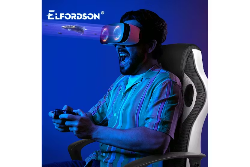 Experience ultimate comfort and support with the ELFORDSON Gaming Chair in white. Crafted with a blend of PU leather and breathable mesh, this chair offers ergonomic design to reduce strain and enhance posture during long gaming sessions or work projects. With a 360-degree swivel, tilt adjustment, and high-grade casters, enjoy smooth movement and convenience while meeting safety standards with TÜV, Intertek, and BIFMA approvals. Elevate your gaming or work experience with the ELFORDSON Gaming Chair, designed for Irish professionals seeking functionality and style.
