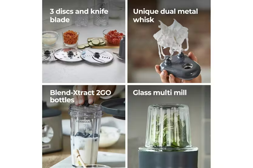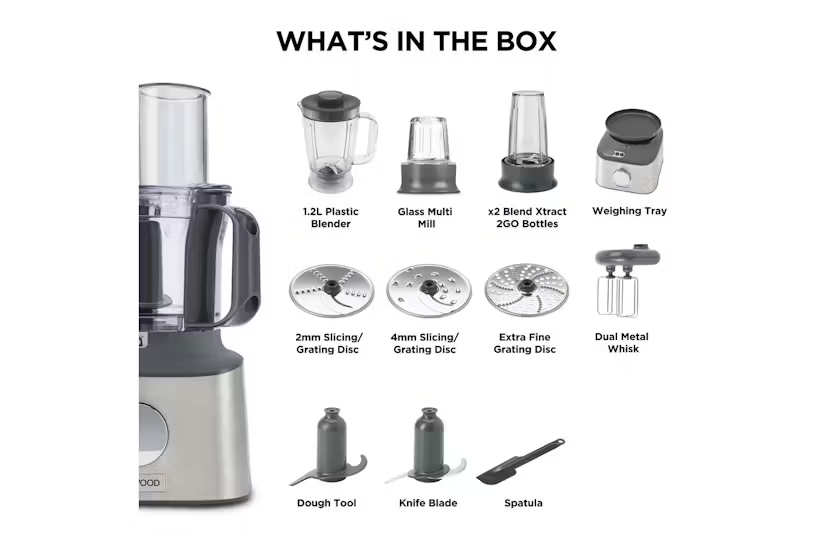 The Kenwood Multipro Compact + Food Processor in brushed metal is the ultimate kitchen essential, featuring integrated weighing scales for precise cooking and baking. With a powerful 800W motor, 2-speed settings, and 11 processing tools, this compact food processor allows you to chop, slice, blend, mill, and more with ease. The included 1.2L blender goblet and 2 x Smoothie to go beakers make it easy to create delicious smoothies and soups, while the dual metal whisk ensures superior performance for egg whites and cream. Upgrade your kitchen with the Kenwood Multipro Compact + for efficient food preparation and delicious results every time.