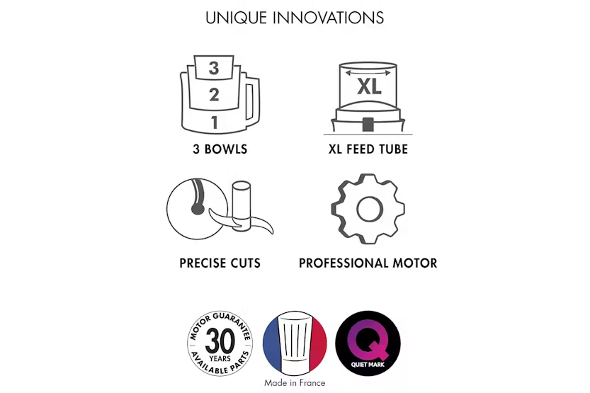 The Magimix 4200XL Food Processor in black is the ultimate kitchen companion for large families and entertaining. With its powerful and quiet motor, professional stainless steel Sabatier blades, and 6-in-1 functionality, this food processor makes food preparation effortless and efficient. From slicing and grating to whisking and kneading, the 4200XL comes with premium quality accessories, three bowls, and an extra-large feed tube to handle all your cooking needs. Plus, with a 30-year motor guarantee, you can trust in the durability and reliability of this top-of-the-line appliance. Upgrade your kitchen experience with the Magimix 4200XL Food Processor. Designed to cater to 6-8 people, this multifunctional powerhouse simplifies meal prep with its easy-to-use three-button system and automatic power adjustment. The included recipe book and Magimix app offer endless culinary inspiration, while the dishwasher-safe parts ensure easy cleanup. With its sleek black design and premium features like the BlenderMix ring and grating discs, the 4200XL is a must-have for anyone looking to elevate their cooking game.