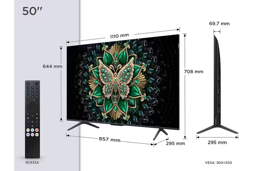 Experience the future of large-screen displays with the TCL C6K 50'' QLED 4K Ultra HD Mini LED Smart TV | 50C6K. Featuring world-leading Mini LED technology, QD-Mini LED, and HVA Panel technology, this TV offers ultra-high peak brightness, contrast, and color gamut for a premium viewing experience. With powerful features like AiPQ Pro Processor, DTS Virtual:X sound, and Game Master mode, immerse yourself in lifelike visuals and immersive sound while gaming or watching your favorite shows. Transform your living space with the ultra-slim design and ambient mode, while enjoying the convenience of Google TV and Google Meet integration. With advanced features like AMD FreeSync, HDMI 2.1, and Kid's Profile for a safe viewing experience, the TCL C6K 50'' QLED TV delivers exceptional picture quality, sound, and functionality for an unparalleled home entertainment experience.