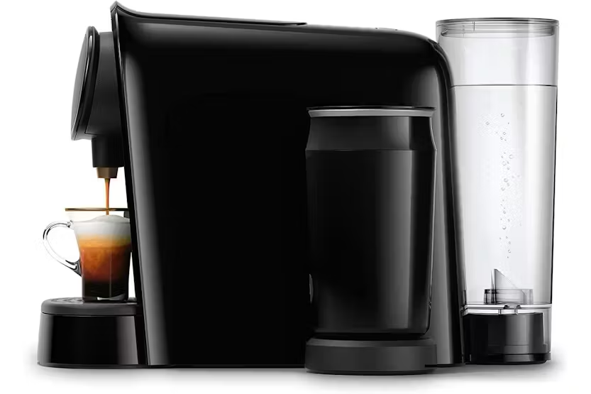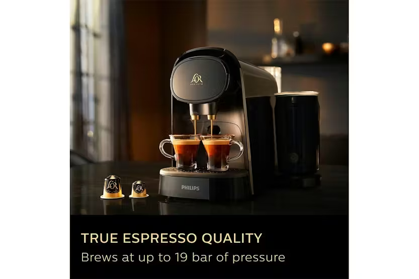Description Online Only Experience the finest in home barista functionality with the Philips L'OR Barista Capsule Machine in Piano Noir. Carefully created for coffee aficionados respected in small appliances, particularly pod coffee machines, this premium device doubles your pleasure by brewing two coffees at once or a double espresso in a single cup. Its exclusive system, equipped with a high-pressure brewing engine up to 19 bars, delivers on the promise of unrivalled and robust espresso taste. The Philips L'OR Barista coffee machine uniquely pairs up with L'OR Espresso and L'OR Barista Capsules. Create any coffee at your home's comfort, ranging from ristretto to espresso to lungo, and enjoy a modern, rich, and satiating experience. Coffees crafted from this state-of-the-art machine noticeably brim with silky and smooth milk froth layer, thanks to the included milk frother Perfect for enjoying your a.m. lungo or your after-meal espresso shot, this superbly designed coffee machine can conveniently adjust its drip tray to fit anything from your large mug to your latte macchiato glass, tickling your fancy to cosy and taste-rich home brewed coffee. L'OR Barista Smart Dual Capsule takes your guesswork off the charts. This ingenious capsule recognition technology automatically triggers the optimal coffee setting for each coffee recipe by seamlessly identifying the capsule size. What's more, your machine comes with a delightful assortment of 9 capsules, each one promising an immersive coffee kick or subtle hint ready to take your taste buds on a thrilling ride. Embrace the irresistible charm of Philips L'OR Barista Capsule Machine and explore the wide world of luxurious homebrew coffee. High-pressure brewing for quality assurance. Compatibility with both L'OR Espresso and L'OR Barista Capsules. Features adjustable coffee volumes from 25ml to 220ml. Includes milk frother to produce silky-smooth, milk-based coffees. Humane design allows for customizing the machine to fit a variety of mug sizes. Smart Dual Capsule Recognition technology for automatic optimization. Philips L'OR Barista Capsule Machine, your ultimate home barista, letting you embrace the beauty of enjoying coffee exactly the way you love it.