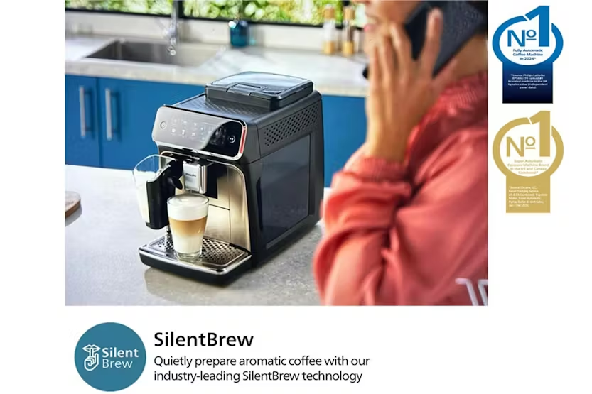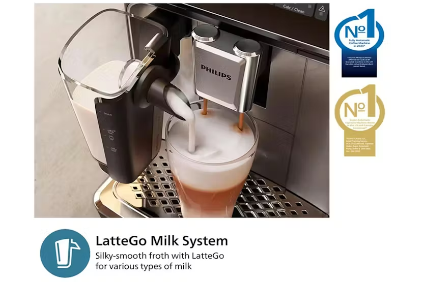 Description Online Only Experience the ultimate coffee indulgence with the 4602 Philips S3300 Series Fully Automatic Espresso Machine . Engineered by the renowned brand PHILIPS, this high-quality small appliance perfects the science of coffee making and transforms it into an art. Whether it's your morning expresso fix, a refreshing iced coffee for a sunny afternoon, or a steamy cappuccino after dinner, this highly versatile coffee machine has got you covered. Enhance every sip with six popular drink options all at the touch of a button. With the ability to produce everything from a robust espresso, aromatic black coffee, creamy cappuccino, luscious latte macchiato, refreshing iced coffee, to hot water for a cup of tea. Each option is extracted slowly at a lower temperature to perfectly unlock the bean flavours in its entirety, giving you the ultimate cup each time. The hallmark feature of this series is the advanced LatteGo system. Equipped with superior cyclonic frothing technology, it gifts your tasty drinks a silky smooth froth. Simplifying the cleaning process, Philips innovatievely uses only two parts with no tubes for the system. Giving you ease to clean under a tap within mere10 seconds or even popping it in your dishwasher. The SilentBrew technology ensures a quiet grinding and brewing experience so you can enjoy your favourite beverage with minimal disruption. Its hard-wearing ceramic grinder is adjustable in 12 steps. Giving you full control over the coarseness, for brewing that best matches your coffee preferences. With the Aquaclean filter, the machine maintains optimum hygiene levels allowing you to enjoy up to 5000 cups without descaling, protected by clear and purified water. Avail the ease of customization with the modern touch screen display. Select your coffee strength, brew length, and milk froth level for a truly personalised coffee experience. Install the HomeID app to explore more recipes, gain insights into your machine, and seek invaluable support. Key Specifications: One touch for six drink options SilentBrew technology Durable Ceramic Grinder with 12 adjustable steps Easy to clean and setup LatteGo milk system Aquaclean Filter for water purification Customizable option with modern touch screen display This magnificently designed PHILIPS 4602 S3300 Series Fully Automatic Espresso Machine caters to your coffee cravings as per your preferences. A fantastic addition to any modern Irish kitchen, brewing a satisfying cup has never been easier!