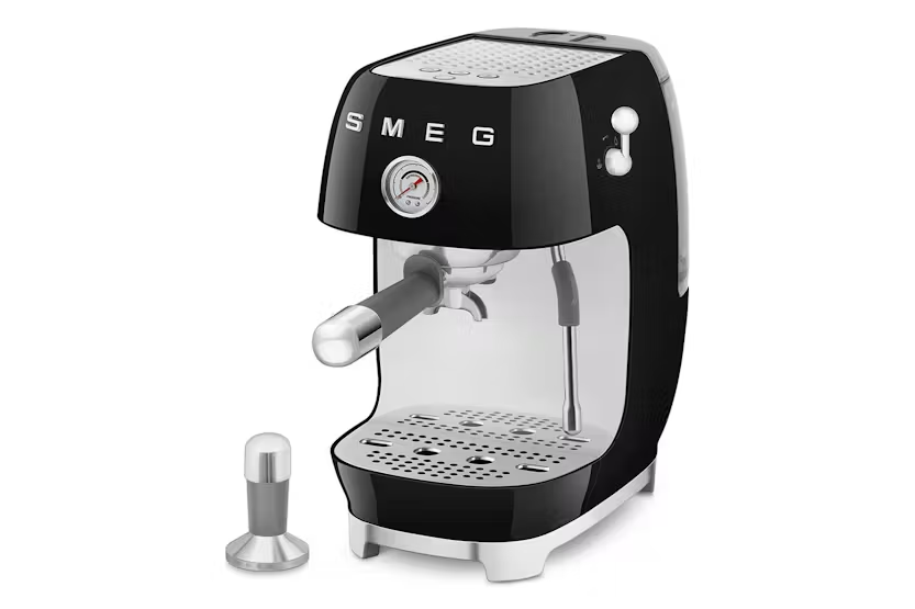 Description Smeg ECF03 Espresso Machine – Hot & Cold Brew Versatility Bring café-quality coffee into your kitchen with the Smeg ECF03 Espresso Machine, now featuring cold brew functionality. Whether you're craving a classic hot espresso or a silky double cold brew, this stylish machine delivers in just 4 minutes. Transform Your Daily Routine into a Barista Ritual With the ECF03 manual espresso machine, you can enjoy a rich and authentic espresso, a creamy milk-based drink, or be surprised by the refreshing taste of cold brew—ready in just a few minutes. Professional-grade accessories and premium materials complete the experience of a true connoisseur, all from the comfort of your home. Power of Choice Brew hot or cold at the touch of a button. Enjoy rich espresso to kickstart your mornings or chilled coffee for effortless iced favorites. More Than Espresso From smooth cold brews to your go-to hot drinks, the ECF03 offers full coffee versatility with intuitive controls and Smeg’s signature 50s retro design. Key Features Filter Holder: Includes a stainless steel filter holder with three filters (single, double, and paper pods). Cup Storage: A passive cup warmer on top of the machine keeps your espresso cups ready to use. At-Home Barista Experience: Dial in your perfect flavor and pour with confidence—whether it’s a bold, piping-hot shot or a clean, cool brew served over ice. Performance Highlights 15-Bar Pump: Ensures consistently perfect espresso extraction for a superior coffee experience. Thermoblock Heating System: Enables faster machine preparation and precise water temperature control for optimal coffee extraction. Precision Pressure Monitoring: An integrated pressure gauge allows easy monitoring of extraction pressure, ensuring each shot is brewed to perfection. Cold Brew in Under 5 Minutes: Prepare a perfect espresso—single or double—or enjoy a refreshing cold brew in less than five minutes. Professional Steam Wand: Professional Steam Wand: Made of stainless steel, ideal for creating smooth and creamy foam for cappuccinos and other milk-based beverages. Included Accessories Complete your barista setup with: Single and double coffee filters (pressurized and non-pressurized) Stainless steel tamper Water hardness test strip Cleaning disc Brush and cleaning needle