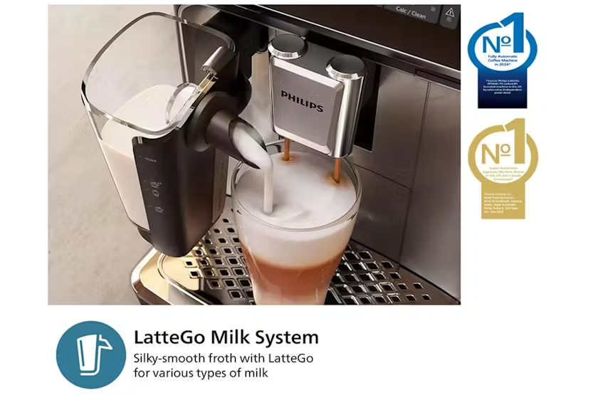 Description Online Only If you are in search of a versatile yet fully automatic espresso machine that will further enhance your coffee experience, consider the 4601 Philips S2300 Series Fully Automatic Espresso Machine . As an Irish coffee enthusiast, you will appreciate the delectable array of drinks the machine can prepare, in addition to how the machine’s ease-of-use digestion ensures you are never far from a delicious cup of coffee. Think of savouring classic espresso with immaculate crema, relishing the robustness of a black coffee, or wrapping your hands around a frothy cappuccino as a part of your everyday routine. With the Philips S2300, all your coffee cravings can be met in merely one touch. Whether you aspire for coffee as hot as your typical morning mug, or like to cool it down when the mood hits, this chic black chrome appliance will forever enrich your at-home coffee experience. Beyond the four delightful espresso beverages, it can indeed prepare, the Philips S2300 also supports hot water creation for tea, further enabling your caffeine options. The machine is enhanced with a durable ceramic grinder to unlock robust flavours and aromas and comes with 12 different settings ranging from fine to coarse. This allows the machine to accommodate a variety of coffee styles, and thus, lifestyles. The SilentBrew technology is a stunning addition that lowers noise levels by around 40%. Neither the grinding of coffee beans nor the brewing process will summon undue noise, perfect for those early morning concoctions where the rest of the household is still asleep. Listen to the soothing trickling of your upcoming caffeinated treat and relish in outstanding European craftsmanship with this espresso machine. In addition, the device is designed with a Aquaclean filter , letting you brew up to 5,000 cups** without worrying about descaling, while still ensuring clear and purified water with each cup. With the advent of the Philips HomeID app, possibilities are further amplified. Discover an extraordinary range of café-like recipes at your fingertips, ensuring you [never run out] of new blends to test out or favorite drinks to revisit. Adapting to modern coffee trends, the LatteGo milk system introduces ease and convenience to automated froth preparation, making it a fitting choice whether you prefer your froth wooded with dairy milk or plant-based alternatives. Simply easy to clean, these features encourage a seamless coffee journey from bean to cup, right at your own home. Product Specifications: One touch, four drink machine Small Appliance SilentBrew Functionality Built-in durable Ceramic Grinder Adapter for multiple coffee types and tea Easy to clean - LatteGo Froth No descaling up to 5000 cups HomeID App Support Bean to Cup Application Coffee Machine Product category No matter what coffee adventure you plan on having next - rich espresso, robust black coffee, milky cappuccino, luscious latte, or a simple tea, sip into bliss with Philips S2300 Series Fully automatic espresso machine.