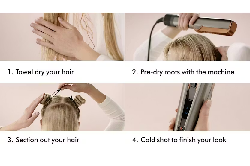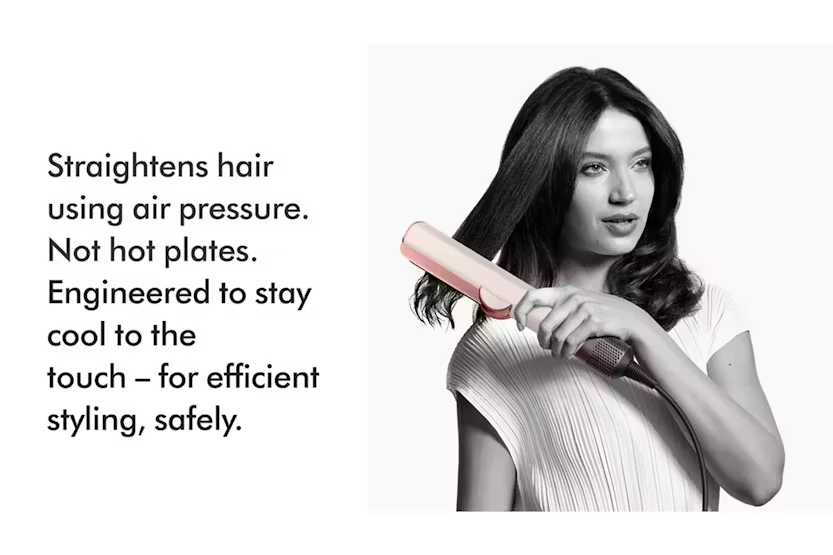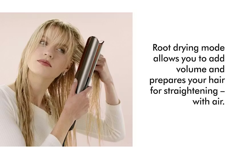 Description Dyson Airstrait Straightener Wet to dry straightening, with air. No hot plates. No extreme heat. No heat damage[1]. The only hair straightener with the Dyson Hyperdymium motor. For powerful, directional airflow that smooths and aligns hair. Straightens hair as it dries, simplifying your routine. For a natural, straight finish. 1. Pre-dry Roots Slide the button to lock and unlock the arms of your machine. Use with the arms locked to gently pre-dry hair and create volume from the roots. Section and Style Dyson Airstrait works at every angle. Section your hair with Dyson sectioning hair clips and work methodically around the head for best results. Cool Mode to Finish Set your style in place with Cool mode. Engineered to encourage the bonds in the hair to stay in their new place. Check out the video: Dyson Airstrait Straightener Reduces time spent drying and styling by an average of 25%.[3] Intuitive Airflow Your machine senses when hair is between the arms and automatically drops to low airflow when it’s not – for quieter, more efficient styling. LCD screen High-definition colour display shows airflow and temperature settings, for easy reference when styling. Wet and Dry Modes Increase shine and decrease damage by straightening with air, from wet. Or refresh your dry hair between washes with no damage to your shine. Auto Pause After three seconds of inactivity your machine will automatically pause. Simply move the machine to restart airflow. No Hot Plates Just Air Air is precisely heated and projected evenly through the tress as you style - without the extreme heat[1] or physical contact of hot plates. Preserving your hair's natural strength and shine, for healthier looking hair and a natural looking result. Explore More Technology Fast, Intelligent Drying Glass bead thermistors, located in the machine arms, regulate airflow temperature up to 16 times per second, to prevent extreme heat damage and protect hair’s natural shine. Airflow to Smooth and Align Airflow is projected downwards at a 45° angle to create the tension needed to align hair for a smooth end style – with less damage and breakage.[2] Dyson Hyperdyium Motor A 13-blade impeller spins up to 106,000rpm, propelling 11.9 litres of air through the machine per second. This generates up to 3.6kPa of air pressure, powerful enough to straighten hair as it dries. Notes: 1. When used in wet to dry mode. 2. When used in wet to dry mode vs unstyled, untreated hair. 3. Time vs. existing routine. Based on the responses of 250 US Airstrait owners after min. 30 days of use, surveyed by Dyson in August 2023. Actual time saved may vary depending on the individual’s hair and styling routine. What's in the Box: Heat-resistant mat: For safe placement during and after styling Product Features: Power modes: 2 LED screen: Styling mode, airflow and temperature settings displayed Air flow: 11.9 l/s Dimensions: 60 x 330 x 41 mm (H x L x W) Weight: 0.935 kg Read More