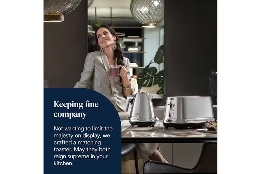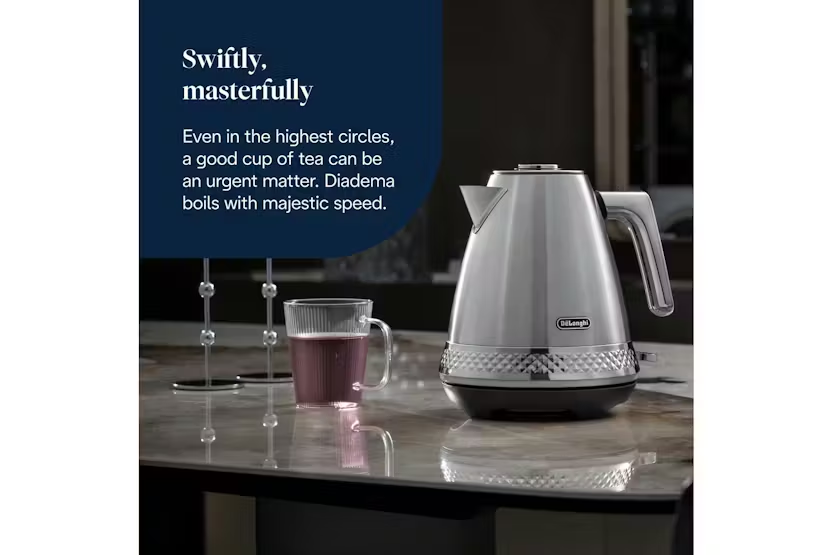 Description Diadema Daily routines turned into luxurious experiences: breakfast or any break during the day becomes an unforgettable moment with Diadema. The collection distils preciousness and is a precise statement thanks to its sumptuous aesthetics. One Touch Flip LID The one touch lid allows you to open the kettle with the simple touch of a finger. The spout is engineered for a streamlined pour of water with zero splashing. Cordless Kettle Cordless kettle for maximum freedom to use: it can be placed on the independent base in any position (360°). Non-slip feet. Assured Water Purity and Perfect Pouring The removable and washable limescale filter ensures water purity. The spout is designed to ensure perfect, splash-free pouring. Fast and Efficient Boiling Powerful concealed heating element to rapidly bring water to boil. The built-in water level indicaor ensures you boil just what you need – minim fill capacity: one cup (0,5L). Product Features: Precious brushed finishing with chromed details Premium metal coined band 360° on/off light One touch flip opening lid Detachable base for cord-free convenience 3-level safety protection Auto shut-off when water reaches the temperature Auto shut-off when body is lifted from base Removable, washable anti-scale filter