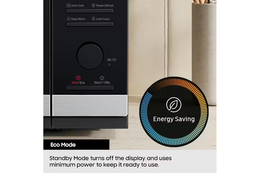 Description Auto Cook Cook tasty meals without guesswork, Auto cook offers options for 15 dishes, each pre-programmed with the right mode, time & temperature, Just select the food type & weight. ECO Mode Home appliances that stay powered on every day waste energy without you noticing, The Standby Mode turns off the microwave oven’s display and uses the minimum power to keep it ready to use. Ceramic Interior Clean up easily after cooking. The smooth surface of the durable CERAMIC INSIDE finish on the microwave oven’s interior can be cleaned without scrubbing and has an antibacterial activity of 99.9%¹ Quick Defrost Choose from 5 food types, Simply enter the type & weight of the food and the microwave calculates the defrosting time for quick ingredient preparation. Product Features Installation type: Countertop Special features: Auto cook,Ceramic enamel interior Heating method: Electric