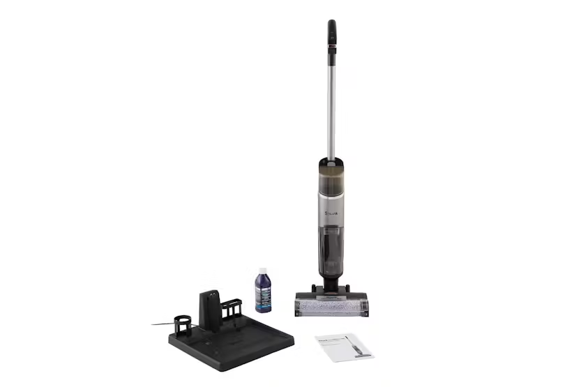 Description Introducing the 3-in-1 Hard Floor Cleaner that Vacuums, Mops, and Cleans Itself. With Cordless Freedom, Clean the Average UK Home in One Charge* Dropped an egg on the kitchen floor? Spilled a bowl of cereal and milk? No need to worry. Shark HydroVac vacuums and mops at the same time, pulling in wet messes, dirt, debris and grime to leave a clean surface that you can walk on almost immediately. Perfect for everyday deep cleaning and unexpected messes alike, it’s ideal for homes with children, pets and other mess-makers. Instantly tackle dropped drinks in the kitchen, playroom paint spills, hallway mud and pawprints, food spills, and so much more. What is HydroVac HydroVac combines powerful suction and hydro mopping, at the same time, with two cleaning modes: Hard Floor Mode Deep cleans hard floors Eliminates spills and dirt, and removes odours – clean up everything from everyday grime and muddy footprints to spilled drinks, cereal and other wet messes Perfect for all sealed hard floors including hardwood, tile, marble and sealed laminate Freshen Mode Cleans and refreshes area rugs, thin-pile rugs and floor mats – perfect for door mats Removes surface dirt and odours Floors Dry Ultra-Fast Walk on floors and rugs almost immediately after cleaning. Odour Neutraliser Technology Shark’s multi-surface floor cleaning solution with Odour Neutraliser Technology helps to eliminate stubborn odours on floors and area rugs, and helps to prevent odours from reforming, for a fresher-smelling home. It dries quickly and leaves no residue. Cleaning solution refills are available to purchase from Shark. Antimicrobial Brush-Roll** Starts Clean and Stays Clean HydroVac Technology helps to keep the brush-roll clean and odour-free. Unlike traditional untreated brush-rolls, Shark’s antimicrobial brush-roll** helps to prevent odour and bacterial growth between uses. The continuous self-cleaning system helps prevent dirt from being redeposited back on your floor. Easy to Empty & Cleans Itself An efficient two-tank system keeps clean and dirty water separate. Need to empty mid-clean? Debris filtration technology in the dirty water tank keeps solids separate, so you can quickly dispose of dirty water with Express Empty. When you’ve finished cleaning, simply place your HydroVac on the dock and run Self-Cleaning mode – the brush-roll, floorhead and interior tubing will be thoroughly washed and dried in just minutes, ready for the next use. Charging while on the dock, this cordless cleaner is always ready to go when you need it. Simple Controls Select a floor type using the convenient handle controls. The LED display shows real-time cleaning information – view your remaining battery life, surface type and cleaning solution level at a glance. Sleek & Stylish Boasting looks as powerful as its cleaning performance, this cordless cleaner is styled with a slim silhouette and polished metallic trims. LED headlights illuminate hidden debris. Please note, this product is not suitable for use on plush/thick area rugs or carpet. Check out the video: Vacuums Mops & Cleans Itself Deep clean hard floors and freshen area rugs with powerful suction and hydro mopping at the same time. Perfect for everyday deep cleaning and unexpected messes alike, tackle everything from everyday dirt and debris to wet spills and stuck-on stains. When you’ve finished cleaning, simply place your HydroVac on the charging dock and run Self-Cleaning mode – the brush-roll, floorhead and interior tubing will be thoroughly washed and dried in just minutes, ready for the next use. Odour Neutraliser Technology Shark HydroVac includes a multi-surface cleaning solution with Odour Neutraliser Technology, helping to eliminate odours on all floors for a fresher smelling home. Cleaning solution refills are available to purchase from Shark. Starts Clean Stays Clean Unlike traditional untreated brush-rolls, Shark’s antimicrobial brush-roll* helps to prevent odour and bacterial growth between uses. The continuous self-cleaning system helps prevent dirt from being redeposited back on your floor. Easy to Empty Two tanks keep clean and dirty water separate. Need to empty mid-clean? Debris filtration technology in the dirty water tank is designed to keep solids separate, so you can quickly dispose of dirty water with Express Empty. Self-Cleaning Mode ensures your HydroVac is always washed and ready for the next use. What's in the Box: Main unit 12oz starter bottle concentrate Self cleaning storage dock with accessory storage Product Features: Deep clean hard floors & freshen area rugs with this lightweight cordless floor cleaner Removes wet & dry messes with powerful suction & hydro mopping Antimicrobial brush-roll* starts clean & stays clean Ultra-Fast dry time Includes multi-surface cleaning solution with odour neutraliser for a fresher-smelling home Cleans the average UK home in one charge**