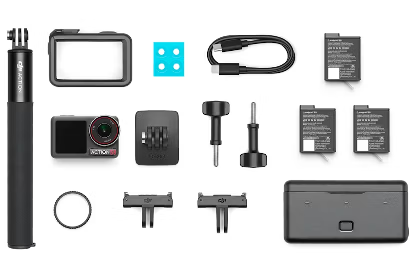 Description Osmo Action 5 Pro DJI osmoaudio connectivity ecosystem Wi-Fi 6.0 & USB 3.0 high-speed transfer Dual OLED high-brightness touchscreens Colour temperature sensor 4nm high-performance chip Next-Gen 1/1.3″sensor 47GB built-in storage Professional air pressure gauge/water pressure gauge Subject centering & tracking 360° horizonsteady 4-Hour extended battery life [1] Dual DJI microphone direct connection Get Into Revolutionary Imaging Next-Gen 1/1.3″ Sensor DJI new sensor captures your best. From city nights to dramatic sunrises, get crystal-clear images with a 4nm chip. Experience vibrant imagery with 2.4 μm pixels and 13.5 stops of dynamic range, rivaling pro cameras. 2.4 μm Pixel Size Up to 13.5 Stops Dynamic range F/2.8 Aperture Shoot in 4K/60fps for breathtaking high-dynamic low-light video, maintaining a balance of highlights and shadows without overexposure. SuperNight mode [2] uses AI noise reduction algorithms for sharper, cleaner footage in extreme low-light. Crystal Clear OLED Touchscreens Catching the day's action? See it clearly thanks to the rear OLED screen's peak brightness now reaching a whopping 1000 nits. Make sure each shot has rich colours and high contrast with the front and rear OLED high-brightness touchscreens. The screens are larger with narrower bezels increasing the screen-to-body ratio by 16%. [3] Tempered glass ensures durability, and the AF coating keeps touch controls responsive, even when wet. [4] With Always On Display enabled, both screens show recording duration and specifications for lower power consumption. Get essential information at a glance, without being disturbed by bright lights at night. Colour All The Bases with 10-Bit D-Log M Action 5 Pro's front and rear touchscreens let you preview 10-bit D-Log M footage with colour recovery, so you can adjust colour and brightness for top-quality raw footage at a glance. Get more colour depth with 10-bit D-Log M and 10-bit HLG modes. [5] Detailed highlights and shadows ensure your footage will stand out from the crowd. Bursting with 40MP of Action Simply press the shutter for stunning shots and crop with confidence. Each photo boasts approximately 4x the clarity of the previous generation with roughly 40 megapixels (7294×5472) or 8K (16:9) resolution. More to See, More to Share 155° Ultra-Wide FOV Bring more life into every shot with the 155° ultra-wide FOV [6] and capture video with a dynamic perspective. 4:3 Aspect Ratio Powers All the Pixels Get more compositional space and cropping flexibility now that the maximum video specification has been upgraded to 4K/120fps in a 4:3 aspect ratio with full-pixel recording at 4K (3840×2880). Slow-Motion Goes Super, 32 Times Make the WOW last longer with 32x Super Slow Motion. The Action 5 Pro's powerful 4nm chip enables frame-by-frame analysis and 4x frame interpolation achieving up to 32x slow-motion; [7] shoot at 1080p/240fps and produce the video equivalent of 960fps in post. Spark Your Wild Side High-Octane Features for Go-Getters Everything's on Track Now DJI brings subject tracking to an action camera. Action 5 Pro now intelligently detects the subject's position and dynamically adjusts the composition. Keep the subject centered in every frame, during horizontal or vertical shots. [8] 4-Hour Power We're setting a new benchmark for battery performance. A single battery now delivers up to four hours of continuous use. [1] Never miss awesome with 50% more operating time compared to Action 4. Even in low-temperature conditions get up to 3.6 hours [9] recording time at temperatures as low as -20° C. 50% Battery Life Boost 4 Hours Max Operating Time Stabilize to Maximize [10] 360° Horizonsteady HorizonSteady not only effectively reduces shakes but also corrects horizontal tilts within a 360° range, handling intense bumps and rotations effortlessly. HorizonBalancing only corrects horizontal tilts within a ±45° range and supports video recording up to 4K/60fps. Rocksteady 3.0 This mode effectively reduces shakes while retaining the dynamic impact of motion, delivering a more immersive first-person perspective and supports video recording up to 4K/120fps. Audio Sampling Rates* Action 5 pro with mic 2 native connection Other action cameras with mic 2 connection 48 kHz (cinema and professional audio digital sampling rate) Approximately 16 kHz Practical Features, Enhanced Performance 47GB Built-in Storage Further optimized bitrate for smaller file sizes. High-Speed Transfer Wi-Fi 6.0 & USB 3.0, with wireless transfer speeds up to 80 MB/s [18]. Battery Fast Charging Charge for 15 minutes, and enjoy 2 hours of shooting [19]. Wi-Fi Livestreaming Supports various resolutions for live streaming and recording. Timecode Quickly synchronize footage from multiple cameras. Live Photos Convert 3-second videos into dynamic photos [20]. Pre-Rec Capture and retain exciting moments before the official recording starts. Highlight Quickly mark key moments to speed up the editing process. Mimo App: Intelligent Shooting and Editing Once wirelessly connected to Action 5 Pro, the Mimo app allows you to preview the camera view and adjust the settings. It comes with a variety of editing templates and a One-Tap Edit feature, all without needing to download the footage during editing, thus saving your phone's storage space. The Mimo app also includes diverse editing features for action cameras, such as Sports Dashboard, Vivid Underwater, and InvisiStick. Background Download While downloading footage, the Mimo app can continue to download in the background even if you switch to other apps on your smartphone. D-Log M Colour Recovery The Mimo app supports colour recovery for D-Log M footage, allowing for more stylish adjustments. This process is quick and convenient, with no computer required. Live Photos & High-Definition Screenshots The Mimo app can generate static and live photos including model information and shooting parameters [20]. Traditional video screenshots are 