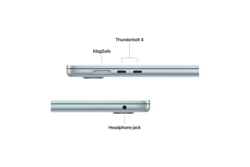 Description MacBook Air 15-inch (M5) Advertisement MacBook Air 15ā³. Might takes flight. MacBook Air 15ā³. Supercharged by M5. MacBook Air with the M5 chip brings blazing speed and powerful AI capabilities into an incredibly portable design. With Apple Intelligence, 1 up to 18 hours of battery life 2 and fast SSD storage starting with 512GB, you can work, create and play anywhere life takes you. SUPERCHARGED BY M5 ā With its faster CPU and unified memory, M5 delivers even more performance and fluidity across apps, making multitasking and creative workflows smooth and responsive. A powerful Neural Engine and nextāgeneration GPU with Neural Accelerators give you a powerful platform for AI. APPLE INTELLIGENCE ā Apple Intelligence is the personal intelligence system that helps you write, express yourself and get things done effortlessly. With groundbreaking privacy protections, it gives you peace of mind that no one else can access your data ā not even Apple. 1 UP TO 18 HOURS OF BATTERY LIFE ā MacBook Air delivers incredible battery life with amazing performance, so you can power through a full day of work or class without worrying about plugging in. 2 A BRILLIANT 15.3āINCH DISPLAY ā The Liquid Retina display supports one billion colours. Photos and videos pop with rich contrast and sharp detail, and text appears super crisp. 3 12MP CENTER STAGE CAMERA ā Automatically stay in frame during video calls with Centre Stage, or share a topādown view of your workspace with Desk View. A threeāmic array and sixāspeaker sound system with Spatial Audio and Dolby Atmos ensure everything sounds great. CONNECT IT ALL ā MacBook Air features two Thunderbolt 4 ports, a MagSafe charging port, a headphone jack ā plus the Apple N1 wireless chip for WiāFi 7 4 and Bluetooth 6. It also supports up to two external displays. MACOS RUNS APPS FAST ā All your goāto apps run lightning fast in macOS, including builtāin apps like FaceTime 5 and Messages. With builtāin virus protection and free software updates, MacBook Air stays running smoothly and securely. IF YOU LOVE IPHONE, YOUāLL LOVE MAC ā Mac works like magic with your other Apple devices. Copy something on iPhone and paste it on your Mac. Send texts with Messages, or answer FaceTime calls directly from your Mac. 5 POWER ADAPTERS ā MacBook Air (15āinch) includes a USBāC to MagSafe 3 charging cable, but does not include a power adapter. A USBāC power adapter or USBāPD power source providing 35W or higher is required. For optimal charging, Apple recommends the 35W Dual USBāC Power Adapter or the 70W USBāC Power Adapter for fast charge (up to 50% in 35 minutes). 6 Configurable options are available. 1 Apple Intelligence is available in beta. Some features may not be available in all regions or languages. For feature and language availability and system requirements, see support.apple.com/enāie/121115. 2 Testing conducted by Apple in January 2026 using preāproduction MacBook Air systems with Apple M5. Battery life varies by use and configuration. See apple.com/ie/batteries for more information. 3 Screen size is measured diagonally. The display on the 15āinch MacBook Air has rounded corners at the top. When measured as a standard rectangle, the screen is 15.3 inches diagonally (actual viewable area is less). 4 WiāFi 7 available in countries and regions where supported. 5 FaceTime calling requires a FaceTimeāenabled device for both caller and recipient and a WiāFi connection. 6 Fastācharge testing conducted by Apple in January 2026 using preāproduction 15āinch MacBook Air units. Charge times vary based on settings and environmental factors.