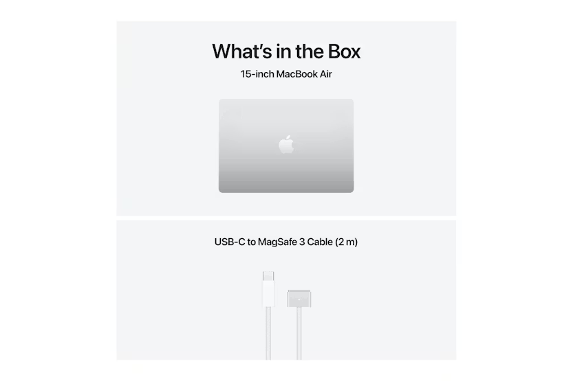 Description MacBook Air 15-inch (M5) Advertisement MacBook Air 15″. Might takes flight. MacBook Air 15″. Supercharged by M5. MacBook Air with the M5 chip brings blazing speed and powerful AI capabilities into an incredibly portable design. With Apple Intelligence, 1 up to 18 hours of battery life 2 and fast SSD storage starting with 512GB, you can work, create and play anywhere life takes you. SUPERCHARGED BY M5 — With its faster CPU and unified memory, M5 delivers even more performance and fluidity across apps, making multitasking and creative workflows smooth and responsive. A powerful Neural Engine and next‑generation GPU with Neural Accelerators give you a powerful platform for AI. APPLE INTELLIGENCE — Apple Intelligence is the personal intelligence system that helps you write, express yourself and get things done effortlessly. With groundbreaking privacy protections, it gives you peace of mind that no one else can access your data — not even Apple. 1 UP TO 18 HOURS OF BATTERY LIFE — MacBook Air delivers incredible battery life with amazing performance, so you can power through a full day of work or class without worrying about plugging in. 2 A BRILLIANT 15.3‑INCH DISPLAY — The Liquid Retina display supports one billion colours. Photos and videos pop with rich contrast and sharp detail, and text appears super crisp. 3 12MP CENTER STAGE CAMERA — Automatically stay in frame during video calls with Centre Stage, or share a top‑down view of your workspace with Desk View. A three‑mic array and six‑speaker sound system with Spatial Audio and Dolby Atmos ensure everything sounds great. CONNECT IT ALL — MacBook Air features two Thunderbolt 4 ports, a MagSafe charging port, a headphone jack — plus the Apple N1 wireless chip for Wi‑Fi 7 4 and Bluetooth 6. It also supports up to two external displays. MACOS RUNS APPS FAST — All your go‑to apps run lightning fast in macOS, including built‑in apps like FaceTime 5 and Messages. With built‑in virus protection and free software updates, MacBook Air stays running smoothly and securely. IF YOU LOVE IPHONE, YOU’LL LOVE MAC — Mac works like magic with your other Apple devices. Copy something on iPhone and paste it on your Mac. Send texts with Messages, or answer FaceTime calls directly from your Mac. 5 POWER ADAPTERS — MacBook Air (15‑inch) includes a USB‑C to MagSafe 3 charging cable, but does not include a power adapter. A USB‑C power adapter or USB‑PD power source providing 35W or higher is required. For optimal charging, Apple recommends the 35W Dual USB‑C Power Adapter or the 70W USB‑C Power Adapter for fast charge (up to 50% in 35 minutes). 6 Configurable options are available. 1 Apple Intelligence is available in beta. Some features may not be available in all regions or languages. For feature and language availability and system requirements, see support.apple.com/en‑ie/121115. 2 Testing conducted by Apple in January 2026 using pre‑production MacBook Air systems with Apple M5. Battery life varies by use and configuration. See apple.com/ie/batteries for more information. 3 Screen size is measured diagonally. The display on the 15‑inch MacBook Air has rounded corners at the top. When measured as a standard rectangle, the screen is 15.3 inches diagonally (actual viewable area is less). 4 Wi‑Fi 7 available in countries and regions where supported. 5 FaceTime calling requires a FaceTime‑enabled device for both caller and recipient and a Wi‑Fi connection. 6 Fast‑charge testing conducted by Apple in January 2026 using pre‑production 15‑inch MacBook Air units. Charge times vary based on settings and environmental factors.