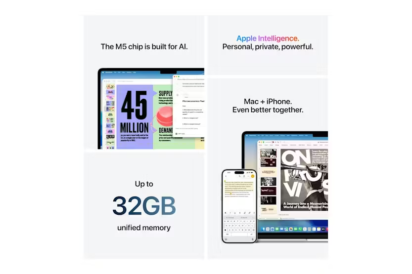 • **Processor:** Apple M5 Chip (10-core CPU, 10-core GPU, 16-core Neural Engine)