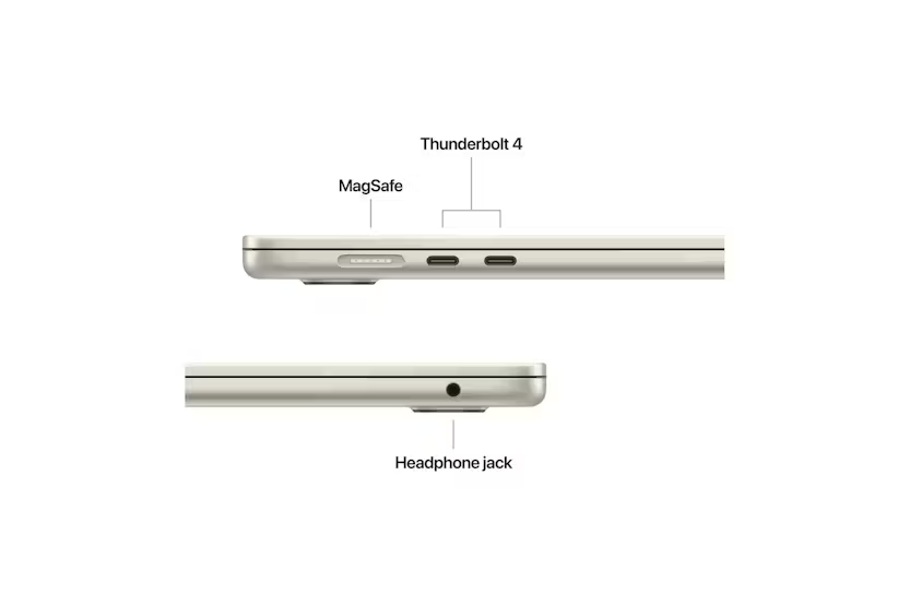 Description MacBook Air 15-inch (M5) Advertisement MacBook Air 15″. Might takes flight. MacBook Air 15″. Supercharged by M5. MacBook Air with the M5 chip brings blazing speed and powerful AI capabilities into an incredibly portable design. With Apple Intelligence, 1 up to 18 hours of battery life 2 and fast SSD storage starting with 512GB, you can work, create and play anywhere life takes you. SUPERCHARGED BY M5 — With its faster CPU and unified memory, M5 delivers even more performance and fluidity across apps, making multitasking and creative workflows smooth and responsive. A powerful Neural Engine and next‑generation GPU with Neural Accelerators give you a powerful platform for AI. APPLE INTELLIGENCE — Apple Intelligence is the personal intelligence system that helps you write, express yourself and get things done effortlessly. With groundbreaking privacy protections, it gives you peace of mind that no one else can access your data — not even Apple. 1 UP TO 18 HOURS OF BATTERY LIFE — MacBook Air delivers incredible battery life with amazing performance, so you can power through a full day of work or class without worrying about plugging in. 2 A BRILLIANT 15.3‑INCH DISPLAY — The Liquid Retina display supports one billion colours. Photos and videos pop with rich contrast and sharp detail, and text appears super crisp. 3 12MP CENTER STAGE CAMERA — Automatically stay in frame during video calls with Centre Stage, or share a top‑down view of your workspace with Desk View. A three‑mic array and six‑speaker sound system with Spatial Audio and Dolby Atmos ensure everything sounds great. CONNECT IT ALL — MacBook Air features two Thunderbolt 4 ports, a MagSafe charging port, a headphone jack — plus the Apple N1 wireless chip for Wi‑Fi 7 4 and Bluetooth 6. It also supports up to two external displays. MACOS RUNS APPS FAST — All your go‑to apps run lightning fast in macOS, including built‑in apps like FaceTime 5 and Messages. With built‑in virus protection and free software updates, MacBook Air stays running smoothly and securely. IF YOU LOVE IPHONE, YOU’LL LOVE MAC — Mac works like magic with your other Apple devices. Copy something on iPhone and paste it on your Mac. Send texts with Messages, or answer FaceTime calls directly from your Mac. 5 POWER ADAPTERS — MacBook Air (15‑inch) includes a USB‑C to MagSafe 3 charging cable, but does not include a power adapter. A USB‑C power adapter or USB‑PD power source providing 35W or higher is required. For optimal charging, Apple recommends the 35W Dual USB‑C Power Adapter or the 70W USB‑C Power Adapter for fast charge (up to 50% in 35 minutes). 6 Configurable options are available. 1 Apple Intelligence is available in beta. Some features may not be available in all regions or languages. For feature and language availability and system requirements, see support.apple.com/en‑ie/121115. 2 Testing conducted by Apple in January 2026 using pre‑production MacBook Air systems with Apple M5. Battery life varies by use and configuration. See apple.com/ie/batteries for more information. 3 Screen size is measured diagonally. The display on the 15‑inch MacBook Air has rounded corners at the top. When measured as a standard rectangle, the screen is 15.3 inches diagonally (actual viewable area is less). 4 Wi‑Fi 7 available in countries and regions where supported. 5 FaceTime calling requires a FaceTime‑enabled device for both caller and recipient and a Wi‑Fi connection. 6 Fast‑charge testing conducted by Apple in January 2026 using pre‑production 15‑inch MacBook Air units. Charge times vary based on settings and environmental factors.