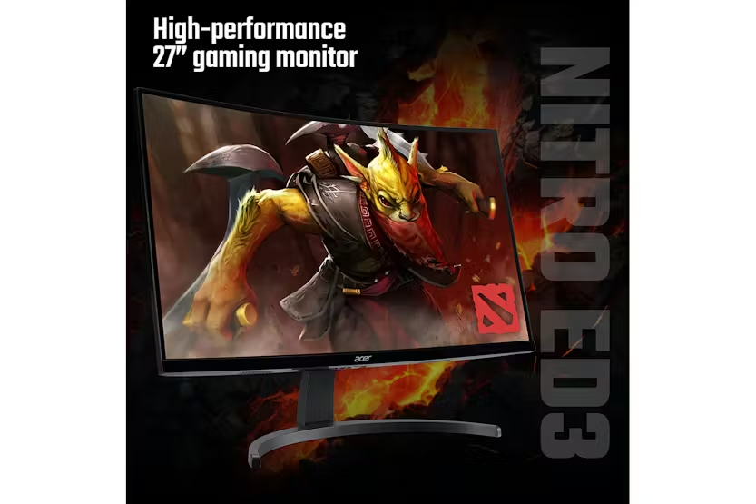 Description Immersive Gaming Unmatched Speed Experience smooth, immersive gameplay with the Acer Nitro ED3 ED273. This 27-inch Full HD curved monitor is designed for gamers who demand speed, clarity, and comfort. With AMD FreeSync™ support and a high refresh rate, every frame is rendered with precision and fluidity. 27" Full HD Curved Display — Dive into your games with a 1920x1080 resolution and 1500R curvature for a more natural field of view. 75Hz Refresh Rate — Enjoy smoother visuals and reduced motion blur for a competitive edge. AMD FreeSync™ Technology — Eliminate screen tearing and stuttering for ultra-smooth gameplay. ZeroFrame Design — Maximize your viewing area with a sleek, borderless look that’s perfect for multi-monitor setups. HDMI & VGA Connectivity — Flexible input options for both modern and legacy devices. Eye Protection — Acer VisionCare™ technology reduces eye strain during long gaming sessions. Specifications may vary by region. AMD FreeSync™ requires a compatible AMD graphics card. Actual refresh rate may vary depending on system configuration. Product Features: AMD FreeSync Premium technology(applying) ZeroFrame design 1500R curvature Acer Display Widget Acer VisionCare 1ms (VRB)