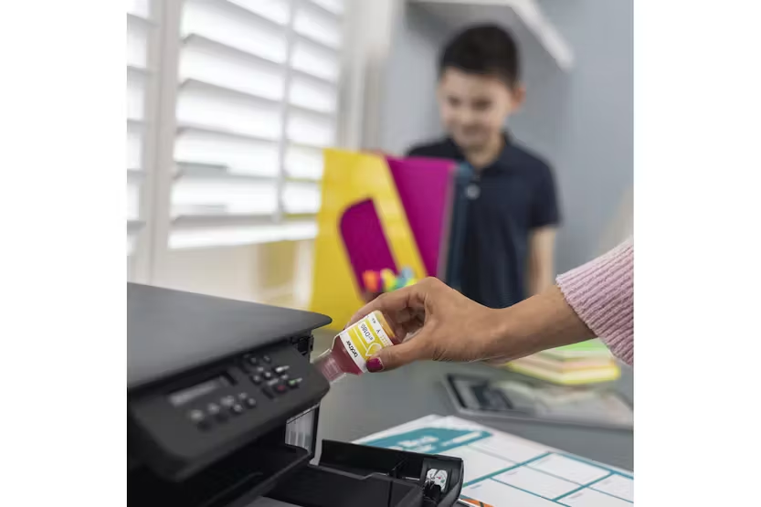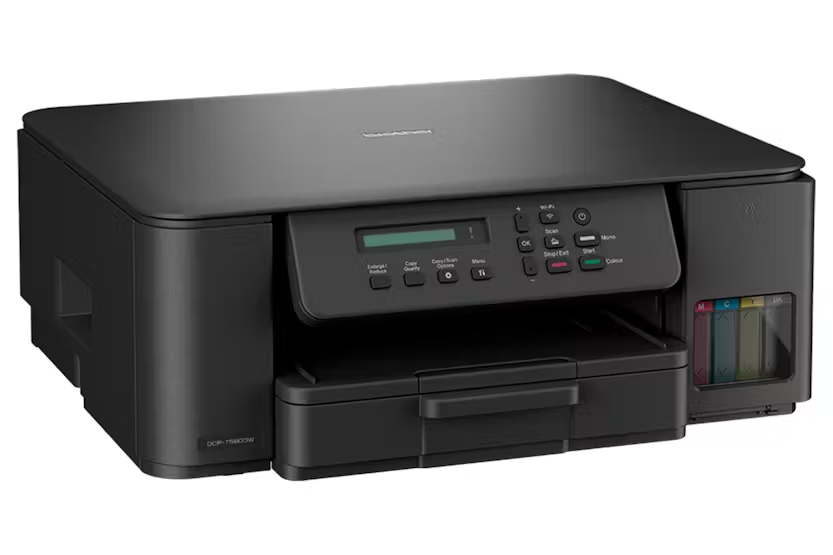 Description Online Only Print for longer with quick fill ink tanks and super high yield ink bottles. Built for easy setup and efficient paper management. Fill up and print more for less with super high yield ink bottles and easy fill ink tanks that lower your colour printing costs. Whether in your home office, small office, or working from the kitchen, enjoy effortless connectivity and quick hassle-free printing with the 3-in-1 ink tank printer DCP-T580DW. Print directly from or scan to PC and Brother Mobile Connect App. What's in the Box Inbox Inks Power supply cord Product Feature Printer type: Colour Control panel: Keys One sided print speed A4 Mono: 16 (images per minute) Two sided print speed A4 Mono: 7 (images per minute) Mobile print Quiet mode Duty cycle: Up to 1,000 pages Print up to 16 images per minute (ISO/IEC 24734) 5GHz WiFi and USB Comes with 7,500 black, 5,000 colour page yield ink bottles Function: Copy, Print, Scan Connectivity: USB, Wireless One sided copy speed A4 Colour: 3.5 One sided copy speed A4 Mono: 11 Scanner type: CIS (Contact Image Sensor) Standard functions: Scan to (File, Image, Email) Local interface: Hi-Speed USB 2,0 IP Filter