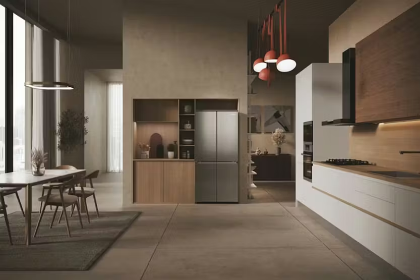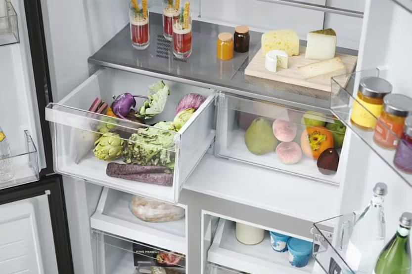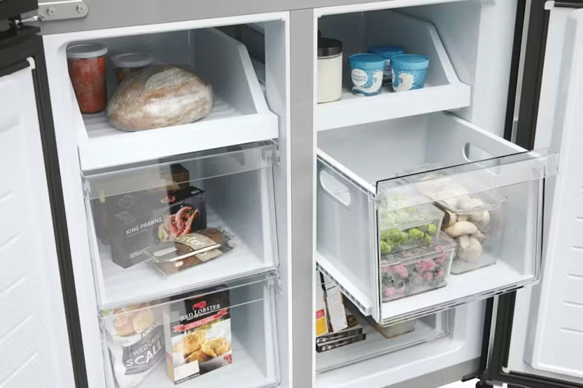 Description Cube 83 Series 3 At at 83cm wide, the refrigerators in the Cube 83 four-door range boast an appealing modern design that enhances the beauty of any kitchen design, while the interior compartments are able to adapt to meet your particular cooling storage requirements. The vertical fridge and freezer doors ensure better visibility of the food stored inside. That means you'll spend less time finding items, which reduces temperature fluctuations and energy consumption, as well as preserving the quality of your food for longer. Haier's Cube 83 Series 3 refrigerators guarantee the perfect preservation of your food thanks to specialised zones able to manage temperature and/or humidity. E Class Choosing Haier’s E Class Refrigerators means saving energy, improving performance efficiency and respecting the environment. -20% consumption compared to the F Class. Keep food taste, consistency and juiciness up to 99%* With Haier Air Surround Fresher Tech, the air flows all around the refrigerator in a more gently and soft way. Thanks to the special lateral outlets, from where the air is spreaded, this system homogeneously distributes cold air embracing the food in the whole fridge cavity thus avoiding direct flow on food and without causing weight loss and food drying. That’s why Haier Air Surround maintains food taste, consistency and juiciness up to 99%* after 7 days like Day 1. *Test issued by an independent external technical laboratory, comparing Air Surround with Direct Flow technology (Haier Group models: CFE735CSJ and CVBN6184WBF/S1) Innovative technology for effortless maintenance Haier’s highly innovative Total No Frost technology cleverly prevents the formation of frost in your freeze protecting your frozen foods and preventing unnecessary energy loss. Now you’ll never have to defrost your freezer again. Maintaining your freezer has never been so easy! Keep control in style An easy-to-use digital touch screen allows you to control the conditions inside your refrigerator without opening the door. Thanks to this useful feature, you can set the temperature of the fridge and freezer independently with a simple touch. Quietly efficient for quicker cooling The superior engineering that has gone into developing Haier’s inverter refrigerator compressors means that vibrations are significantly reduced during their operation, so they’re less noisy, while still delivering outstanding energy efficiency and super-fast cooling. Product Features: E Class Gently air flow Total No Frost Technology Touch Display Inverter Compressor Read More