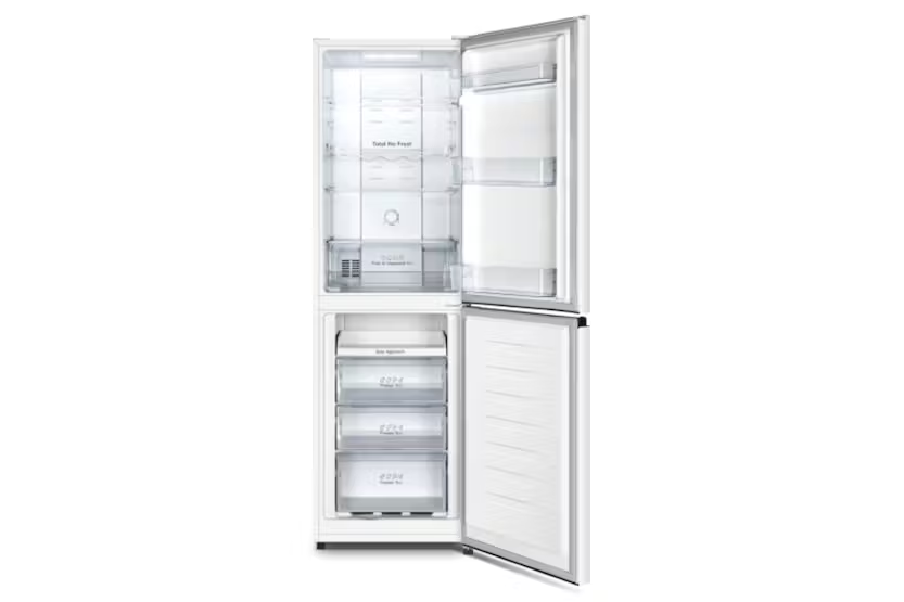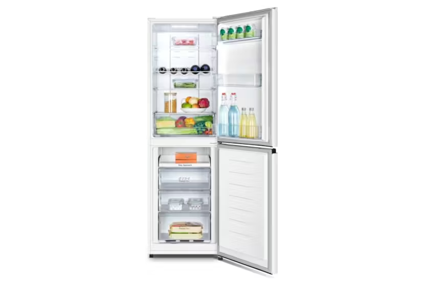 Description Fresh Crisper: The Fresh Zone Storage Area The fresh crisper provides enough space to store fruit and vegetables, and its ideal temperature perserves the foods freshness and aroma. The transparent design enables easy overview of the content. Total No Frost: No Frost, Anywhere - Ever! It provides a suitable condition which keeps food fresh and nutritious longer as no frost can be found in refrigerator, which means you don’t need to waste your cherish time to defrost. Super Cool: Powerful Cooling The super cool function can cool down the internal temperature quickly and keeps the fridge compartment to a regular +2℃ for 6 hours. This is great to help keep the flavour, color and nutritional value of fresh food. Precise Electronic Control: Set Temperature At Ease The easy view electronic control panel makes controlling the temperature more accurate and various of refrigerator modes are easier to control than ever before. Counter Depth: Perfect Fit Into Every Kitchen This fridge-freezer will fit perfectly into your kitchen with the new counter depth design, while offering plenty of flexible storage. Reversible Door: Open And Closed, Your Way A modern design with a reversible door fits perfectly with any kitchen layout. In addition, the door can be opened from right or left, depending on if you are left-handed or right handed. Whatever works best for you. Energy Efficiency Materials: Maximum Energy Efficiency We employ a vacuum insulation panel, an efficient frequency conversion compressor, and an efficient refrigeration system to deliver lower energy consumption and help protect the environment – and even save you money at the same time. High-level Energy Class: Saves Energy And is Environmental Friendly The Hisense E Class refrigerator consumes up to 47% less energy than an F Class product. Chrome Wine Rack: Stylish Space For Storing Bottles A dedicated and stylish space for wine and soft drink bottles frees up space in your fridge door and prevents bottles from rolling around on the shelves. Safety Glass Shelves: Rest Easy with Heavy Loads The tempered glass shelves are strong enough to carry heavier loads. These shelves are stronger than regular glass and more durable. Low Noise: Enjoy Quieter Life With an excellent fan and compressor system built in, this model promises a more stable performance and a low noise level, providing you a peaceful living space. LED Display: Easy To Read, Easy To Use The LED Display ensures all functions and temperature settings are clearly seen from the display panel. Bottom-Mount Fridge-Freezer: Guardian Of Fresh Food This Hisense bottom-mount fridge-freezer aims to be your food management expert. With its 90° door opening and counter-depth design it's more than suitable for any kitchen. There is a special 0° Cooling Plus drawer with temperature 2-3 °C lower than in the rest of the fridge, perfect for storing meat, fish and dairy products. Product Features: Door material: Varnished Fridge compartment illumination: LED strip on ceiling Fresh crisper Noise class: C Read More