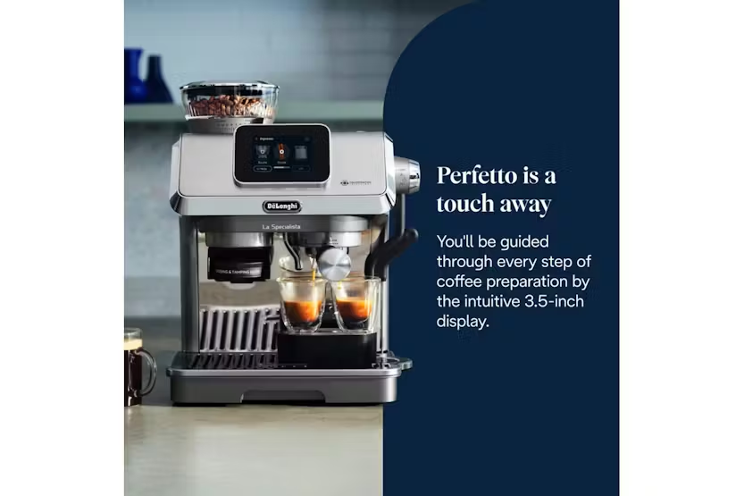 Description Discover the joy of coffee crafting at home with La Specialista Touch. The intuitive touchscreen display simplifies every step, guiding you seamlessly through hot and cold drinks, Cold Brew and automatic milk frothing with the Auto LatteArt steam wand, while Bean Adapt Technology gives you the freedom to explore different bean varieties. Enjoy the perfect coffee ritual, effortlessly. Active temperature control with PID maintains water temperature throughout brewing Burr grinder with 15 grind settings and 4 infusion temperature profiles Make a Cold Brew in under 5 minutes* with Cold Extraction Technology Precise dosing and tamping thanks to the advanced tamper Cool-touch steam wand for improved safety and cleanability Your Coffee Favourites at Your Fingertips The intuitive 3.5" touchscreen display takes you effortlessly through each step of preparing the perfect coffee, offering a personalised experience that’s easy to follow. The Perfect Coffee Extraction Explore a world of coffee bean varieties while achieving the perfect cup. Get the perfect extraction thanks to Bean Adapt Technology, balancing the grind level, coffee dose and infusion temperature according to the coffee beans you choose. Milk Texturing Made Easy La Specialista Touch makes creating silky microfoam effortless, for café-quality drinks. The Auto LatteArt steam wand automatically textures dairy milk or plant-based alternatives, with 4 temperature settings and 5 foaming levels to suit different milks. Precise Grinding The burr grinder with 15 settings and step-by-step on-screen guidance makes it more intuitive than ever to achieve the perfect grind. No Guess, No Mess No need for guesswork. You can tamp with barista confidence using the advanced tamper with dosing aid, ensuring a perfect dose. Discover Your Favourite From Espresso to Cappuccino, Flat White and Cold Brew, craft your favourite drinks and explore new ones. Select from pre-set coffee drinks or personalise your perfect cup. Frothing Finesse Select dairy or plant milk to adjust temperature and foaming level for le perfect silky microfoam. The isplay makes it easy to achieve your ideal texture. What's in the Box: Coffee tamper Milk jug Product Features: Auto shut-off Removable water tank Removable drip tray Water level indicator Bean adapt technology Read More