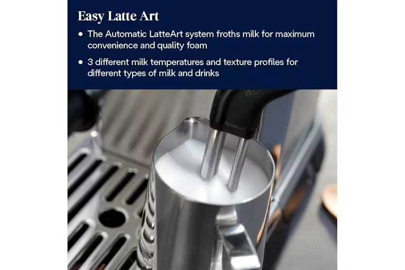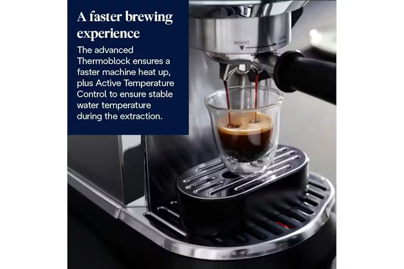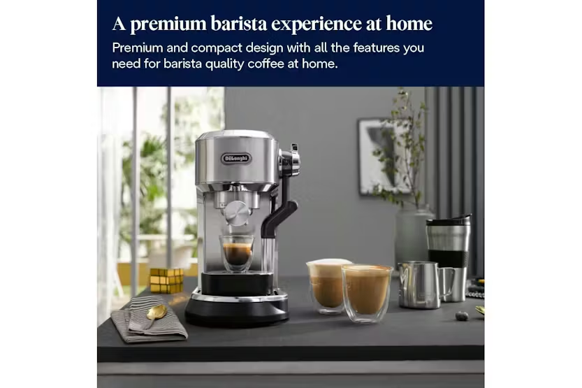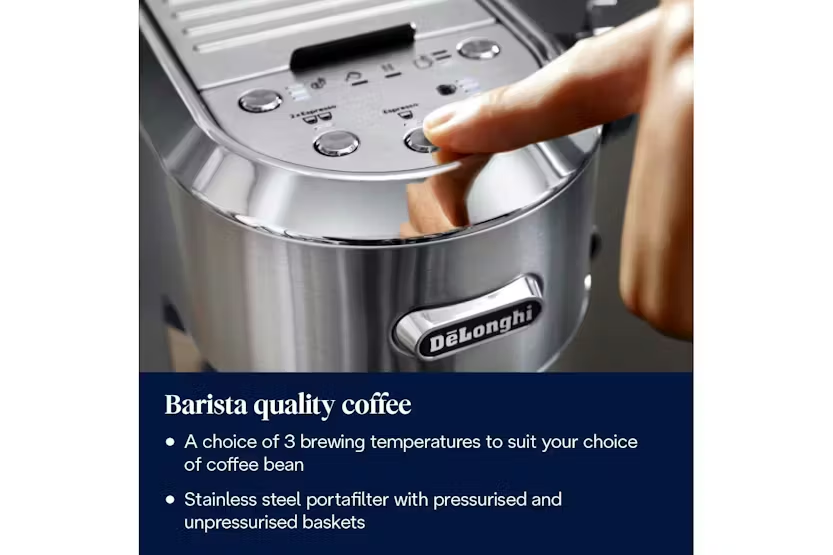 Description Check out the video: Superior Coffee Quality at Home Enjoy superior coffee quality at home with this compact manual coffee maker, the De'Longhi Dedica Maestro Plus. Craft your own barista-style drinks thanks to the Auto LatteArt system, with three infusion temperature profiles to achieve the perfect results to suit your tastes. This premium machine features a new user interface, with more space for user settings at the touch of a button. Versatility to Suit Your Tastes Perfectly The Auto LatteArt automatic milk frother offers maximum convenience when crafting quality milk foam. Choose from three different temperature profiles, and choose the perfect texture depending on whether you want dense foam, fine foam, or microfoam for latte art. Your Drink at the Perfect Temperature The automatic temperature sensor makes it easy for you to choose the most suitable temperature for the drink and the type of milk. Low is suitable for alternative milk, medium for cow’s milk, and high for to-go drinks. A Sip of Italian Design Dedica, with its unique and minimalist design, effortlessly brings a touch of stylish elegance to your kitchen. Its enlarged dimensions, which provide more space for convenient user arrangement, are complemented by its sleek and streamlined profile. Superior Coffee Quality Advanced Thermoblock and ActiveTemperature Control combine for theperfect brewing results, with threeinfusion temperature profiles available. New User Interface The increased dimensions allow morespace for convenient user settings atthe touch of a button, while stillmaintaining the machine's compactdesign. Convenient AutoCleaning The steam wand features a handy self-cleaning system, ensuring it staysclean after frothing, after every use. What's in the Box Tamper Milk jug Coffee dosage spoonand cleaning tools Product Features: Advanced thermoblock ensures a fast heat up, with 3 brewing temperatures available Active temperature control maintains a stable water temperature during the extraction The increased dimensions offer exceptional stability and more room for convenient user settings, while maintaining sleek lines and an iconic shape Auto latteart milk frothing system offers maximum convenience and quality milk foam The self-cleaning system keeps the steam wand clean after foaming, every time Removable water tank Water level indicator Number of filters: 2 Milk temperature setting: 3 Read More