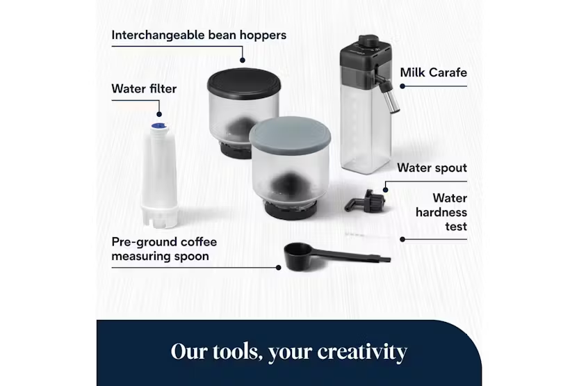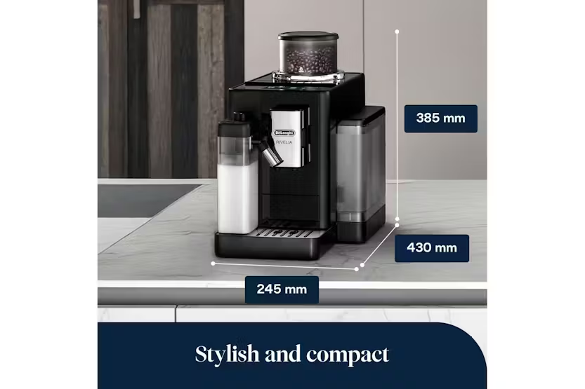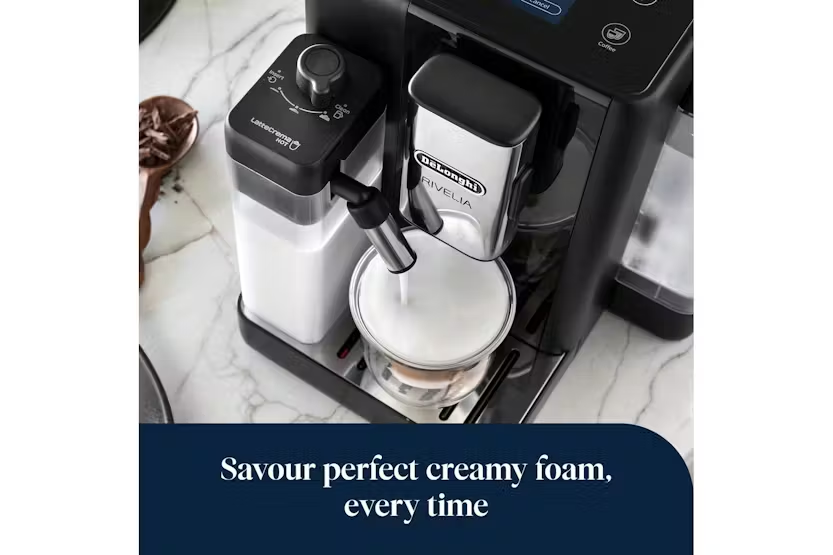 Description Check out the video: Immerse yourself in the world of coffee with rivelia. Explore infinite bean varieties with bean switch system, enjoy an immersive experience with a 3.5" full-touch colour display, with rich animations and coffee routines tailored to you. Top your milk-based drinks with fine rich foam using lattecrema hot technology, in a compact machine that fits your style. Check out the video: Explore the Infinite World of Coffee Beans Bean switch system lets you explore new bean varieties. Rivelia comes with two 250g interchangeable hoppers to let you enjoy different coffee tastes. To prepare for the switch, first use the switch mode to empty the grinder of the current beans, choosing to make a coffee or grind them away. An Immersive Coffee Experience Tailored to You Enjoy interacting with the intuitive 3.5" full-touch colour display, with rich animations. Rivelia learns your coffee routine and tunes your menu throughout the day, for an immersive coffee experience tailored to you, with up to 4 user profiles. Freshly Ground Coffee Enjoy high-quality coffee in every cup as the machine grinds the beans fresh, right before brewing. One-Touch Drinks The intuitive one-touch swipe display lets you select and brew your favourite drinks at the touch of a button. Lattecrema Hot Technology Enjoy automatic fine rich milk foam at the right hot temperature for delicious in-cup results, with one-touch automatic cleaning after each use. Variety of Drinks Swipe through 16 drinks and select your favourite, including espresso, americano, cappuccino and flat white. Check out the video: Product Features: Bean switch system lets you easily switch and explore different bean varieties Bean adapt technology easily adapts grind level, coffee dose and infusion temperature to the beans you choose Lattecrema hot automatically delivers a fine rich hot milk foam, with one touch automatic cleaning Intuitive 3.5" colour display with 16 one-touch drinks Beans container capacity (g): 250 Grounds container capacity (n):10 Max cup height (mm):140 Rated voltage/frequency (v~hz):220-240 v / 50-60 hz Plastic with metal parts Cold coffee drinks: cold coffee,cold espresso, cold americano Hot coffee drinks: espresso,espresso lungo, coffee, long ,americano Hot milk drinks cappuccino,latte macchiato,cappuccino mix,hot milk,caffelatte,flat white,cortado,espresso macchiato Other drinks hot water Possibility to customise length Advanced personalisation 4 user profiles Display:3.5" TFT colour Milk system lattecrema technology Twin shot Possibility to use pre-ground coffee Programmable water hardness Possibility to use water filter Read More