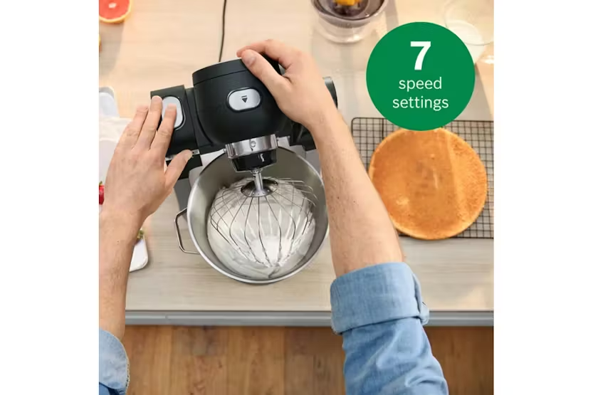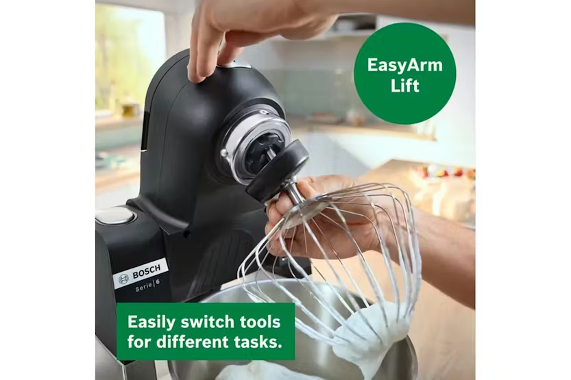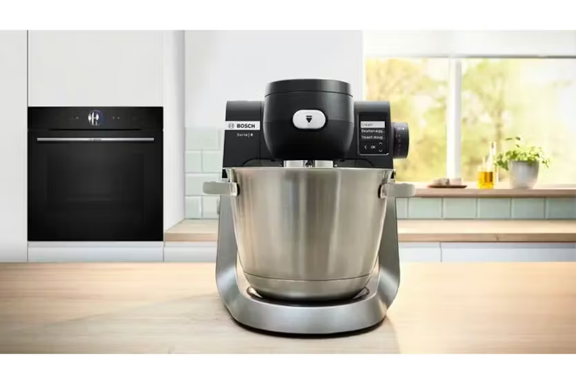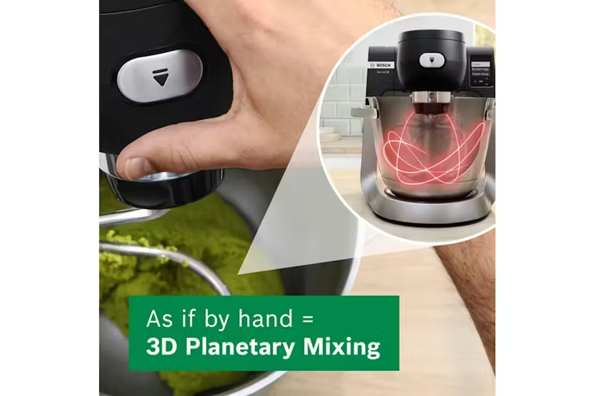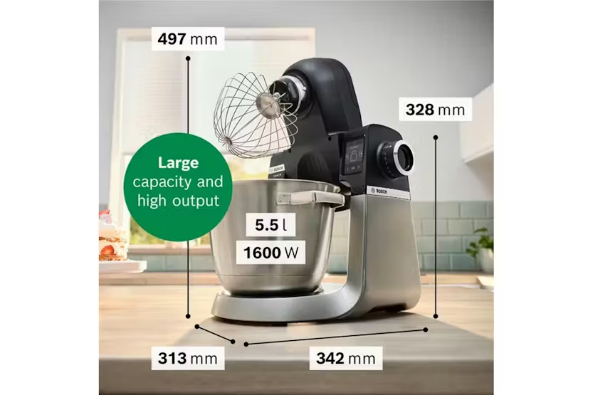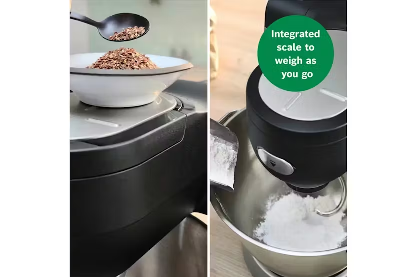 Description Intelligent Sensing Technology: 7 Sensor-driven Automatic Programmes Intelligent sensing for perfect results every time: the 7 sensor-driven automatic programmes monitor the mixture every second and automatically stop the machine when the consistency is perfect. Simply select your programme for cake mix, pastry dough, whipped cream, egg whites and more! Integrated Scale to Weigh as You Go: Precise Measurements Integrated scale for precise measurements: weigh ingredients on top of the mixer or in the bowl with ease. The LED display shows the measurement to the exact gram, millilitres of oil or milk, and in pounds or ounces too, for perfect results. 3D Planetary Mixing: Evenly Mixed and Kneaded Ingredients Mimics hand kneading, for perfect end results. The angled movement of the attachment ensures all ingredients are evenly mixed and kneaded so there’s no need to intervene by hand. Large Capacity: XL 5.5L Bowl for High Output Extra-large 5.5L brushed stainless steel bowl: prepare large amounts of dough in a single step and up to 3.5kg of cake mixture. The large capacity of the bowl coupled with 3D planetary mixing ensures large quantities can be handled with ease. Step By Step Recipes Made for You Download the home connect app and get inspired by recipes exclusively created for your series 6 kitchen machine. Available for ios and android operative systems. Every Second Counts When preparing your recipe, every second counts. With the integrated timer on your series 6 kitchen machine, your dough, creams, and smoothies will be done to perfection! Just set the timer, and your series 6 kitchen machine will stop automatically and notify you once the time is up. 7 Speed Settings: Easy and Fast Preparation Every accessory requires a different speed setting. Thanks to 7 individual speed settings, your dishes can be prepared very quickly, easily and precisely. Need more speed or have to blend some ingredients? Adjust the pulse setting and enjoy your dish in no time. Patisserie Set Designed with Precision in Mind Ensure perfect results with perfect kneading and mixing. A stirring whisk that is perfectly fitted to the bowl and mixes ingredients smoothly. A newly designed metal beating whisk made to delicately create whipped cream and a kneading hook created for high-performance kneading. Each tool features a cover cap to protect the motor against accidental splashes and to keep it clean. Easy Assembly of Accessories Thanks to Colour Coding No more thinking about how to attach accessories. Colour coding on the appliance and attachments ensures easy assembly. Whether burger, pasta or baby food: the huge selection of optional accessories means you can easily put your ideas into practice. Read More What's in the box 1 x Lid 1 x Stainless steel mixing bowl 1 x Professional kneading hook 1 x Professional beating whisk 1 x Professional stirring whisk Product Features: Connection rating: 1600 W Voltage: 220-240 V Frequency: 50/60 Hz Material body: Plastic with stainless steel Material of mixing bowl: Stainless steel Sensor control plus