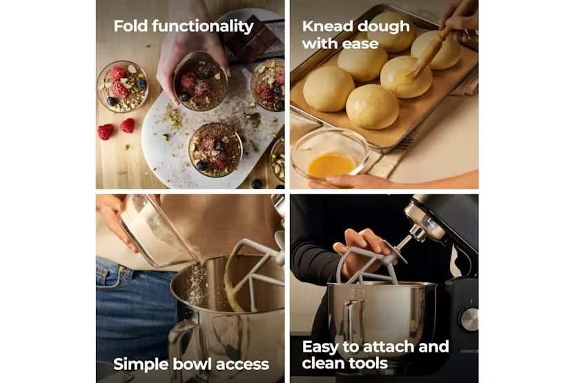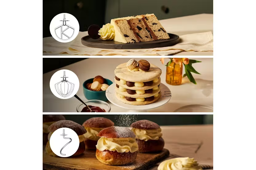 Description Check out the video: Whoever You are, Be You Express your individual flair, your love of design and your passion for baking with kMix. Choose from Bold Red, Calm Cream, Sleek Black or Pure White, complimented by glossy finishes, matt tones and stainless steel for the ultimate kitchen style statement. Power that Gets Results More than just a pretty picture, kMix delivers great results too. Powered by a 1000w motor, you can enjoy effortless performance, from egg whites to bread doughs. Whatever the task, kMix gets the job done. Flawless Folding Results For delicate mixes, enjoy the kMix fold function. Gentle enough so no air is lost but thorough enough to catch all the mix, for bakes are as light as air. Set the Pace With the electronic speed control dial you can build speed when you need to- for less mess when you start and ultimate control of your mix. The Right Tools for the Job Getting started is as easy as one, two, three with the whisk, a dough tool, and the legendary K-Beater. Whatever's on the menu, create delicious treats in no time. Customise Your kMix No know limits. With our range of optional attachments, that connect to the slow speed hub, you can do more than just mix. Grate, spiralise, mince, grind, juice and much more- see where you creativity takes you! Keep All the Goodness in-Bowl Make light work of adding ingredients with the splashguard and large feed tube, for mess-free baking fun. Product Features: Body material: Metal Capacity - cake (kg): 2.72 Capacity - dough (kg): 1.35 Capacity - flour for pastry (kg): 680 Electronic speed control Fold function Planetary mixing Bowl attachment outlet Outlet - slow speed Read More