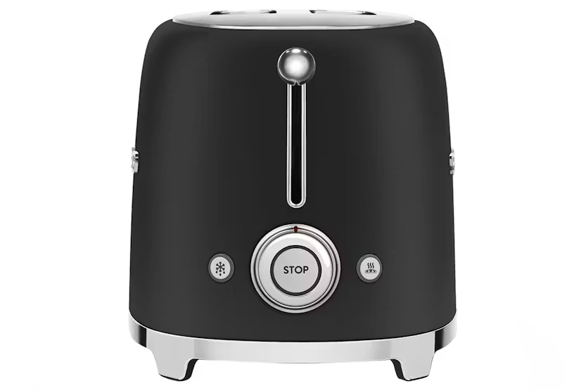 Description Matte Black A sleek Matte black finish joins Smeg’s extensive SDA colour range. Available with kettle and toaster options, this new finish and neutral colourway will create a focal point within any kitchen aesthetic. The tactile texture adds another dimension to the kettle and toaster, along with an air of luxury and sophistication, Very on trend, these will to appeal to the fashion conscious who want to add abit of fun into their kitchens and stand out from the crowd. Check out the video: Multi-function control REHEAT to heat toast or slices of bread, or to continue toasting if the result was not satisfactory, DEFROST to unfreeze frozen slices of bread, and BAGEL to brown just one side of the bread without toasting the other. Large Compartments Self-centering racks in the compartments ensure even toasting of slices of bread, whatever size they may be. Automatic Pop-Up When the selected toasting time has finished, the slices pop up automatically. Practical Optional Accessories Sandwich racks and bun warmers are available to fit alltoaster sizes to make tasty toasted sandwiches, to heat through buns and pastries or to keep toast warm. Featuring two slots suitable for 2 slices, this toaster is perfect for any space, thanks to its compact dimensions. Its versatility shines through with different toasting levels and functions, catering to various types of bread and individual preferences. 6 toasting levels offer the best results plus a defrost function; reheat function; and a bagel function which toasts just one side of the slice Experience ultimate comfort with the automatic slices popup feature Simplify the cleaning process with the convenient crumb tray Enjoy versatile toasting with wide slots featuring automatic centering, accommodating slices of varying thickness Product Features: Anti slip feet Reheat function Integrated cord Automatic pop-up Lever material: Stainless steel Type of controls: Lever, buttons, control knobs