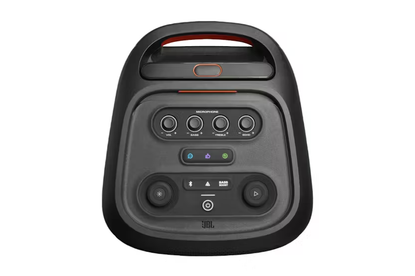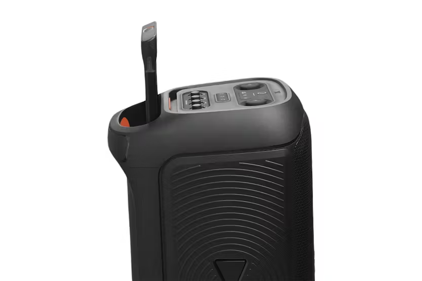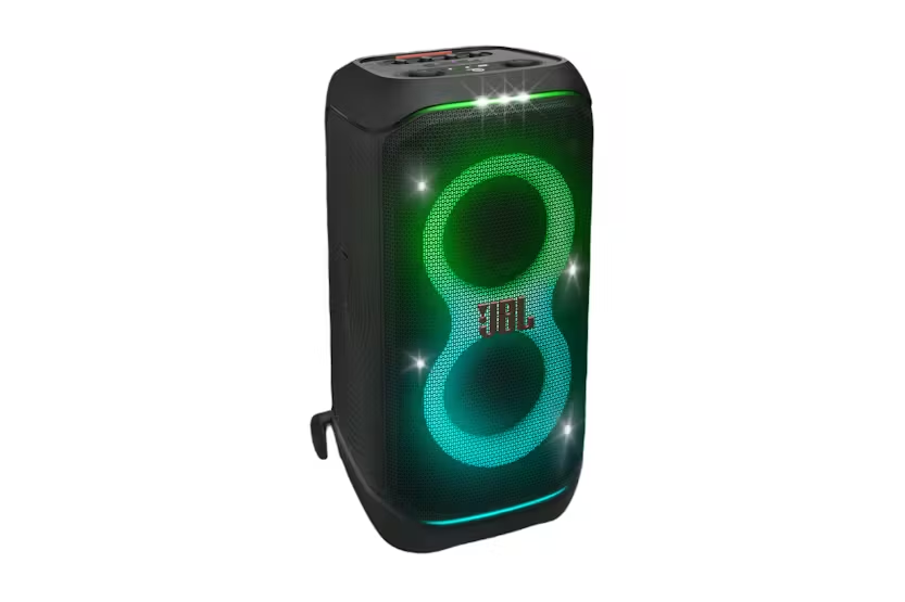 Description Check out the video: Powerful JBL Pro Sound Rock out with powerful JBL Pro Sound from two 6.5" woofers that deliver clean, precise, deep bass even at top volume and a pair of 25mm dome tweeters that produce crystal clear highs. Indoors or out, you can fill a space the size of a tennis court with music. Futuristic Lightshow Take all that sound and add a thrilling lightshow featuring starry lights, cool light trails, and strobe light effects—all synced to your beat. Up To 18 Hours Of Play Time Party from dusk till dawn with up to 18 hours of play time on a single charge. And if that's not enough, just swap out the replaceable battery* and Keep on dancing. Or if you just need an extra boost, 10 minutes fast charge gets you an extra 2 hours of playtime. *Additional replaceable battery sold seperately Telescopic Handle And Wide, Sturdy Wheels Roll up to the party with wide, sturdy wheels and an easy-to-grip handle that telescopes up when you need it and down when you don't. Splash Proof Whether you're partying with friends in the park or by the seaside, the JBL PartyBox Stage 320 is IPX4 splashproof, means a little rain won't stop the fun. AI Sound Boost Get the most out of your speaker. AI sound boost analyzes the incoming signal in real time while simultaneously using an AI algorithm to predict loudspeaker movement and power response. It pushes the driver to its maximum capability, fully exploiting the dynamic range for better and more powerful sound. It also reduces distortion even at high volume, maximizing the bass output and overall loudness. Multi-Speaker Connection By Auracast Want even more roaring original JBL Pro Sound? stereo pair two speakers for a wider sound stage. For your biggest events, multiple JBL Auracast-enabled PartyBoxes can be connected wirelessly using Auracast Dual Mic & Guitar Inputs Bring live talent into the mix. It's easy to sing and play along using the guitar and dual mic inputs. With karaoke EQ tuning and the built-in lightshow, everybody will sound—and look—like a superstar. JBL PartyBox App The JBL PartyBox app makes it easier than ever to add interactive party effects, control your music, adjust EQ settings, and customize the colors and patterns of your light show for the perfect party vibe. Made in Part With Recycled Materials The JBL PartyBox Stage 320 incorporates post-consumer recycled plastic. It's also packaged in FSC-certified paper printed with soy ink. Bring Your Party Anywhere With the JBL PartyBox Stage 320, you can get the party started anytime, anywhere. Transform any space, inside or outdoors, into a dance floor. Powerful JBL Pro Sound and big thumping bass fill a wide soundstage and get the crowd moving, while their eyes are delighted by an adaptive lightshow of swirling starry lights, cool light trails, and amazing strobe effects synced to your beat. Use the mic and guitar inputs to show off your stage presence. You can steer the party's flow throughout the night with fun interactive party effects. The solid telescopic handle and wide, sturdy wheels mean you can roll the JBL PartyBox Stage 320 just about anywhere, and once you're there, the splash-proof construction means a little rain won't ruin the fun. Best of all, it delivers up to 18 hours of playtime—and if the good times are still rolling, just swap out the replaceable battery and keep going. For an even bigger party, it's easy to connect or use the JBL PartyBox app to connect multiple JBL Auracast-enabled speakers wirelessly. Bring people together and elevate the experience with the JBL PartyBox Stage 320. What's in the Box: 1 x JBL PartyBox Stage 320 1 x Quick-start guide 1 x Safety instruction and warranty card AC power cord - quantity and plug type vary by regions. Product Features: Bluetooth version: 5.4 Charging time (hrs): 3 Bluetooth/USB input: -12dBFS Cable length: 2.0 m / 6.6 ft 3.5 mm audio cable Input: Yes Signal to noise ratio: > 80dB Dynamic frequency response range (Hz): 40 Hz - 20 kHz (-6dB) Transducers: 2 x 6.5 inch (165mm) woofers, 2 x 1 inch (25mm) dome tweeters