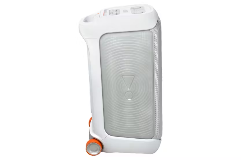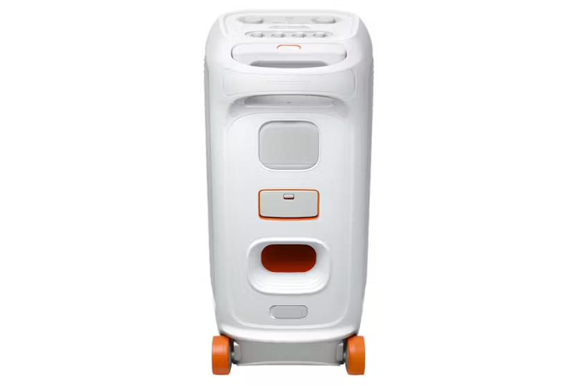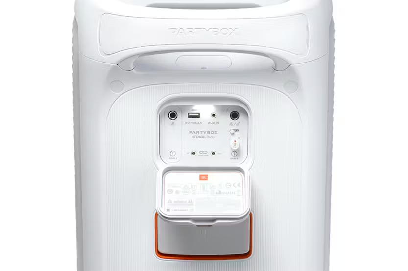 Description Check out the video: Bring Your Party Anywhere With the JBL PartyBox Stage 320, you can get the party started anytime, anywhere. Transform any space, inside or outdoors, into a dance floor. Powerful JBL Pro Sound and big thumping bass fill a wide soundstage and get the crowd moving, while their eyes are delighted by an adaptive lightshow of swirling starry lights, cool light trails, and amazing strobe effects synced to your beat. Use the mic and guitar inputs to show off your stage presence. You can steer the party's flow throughout the night with fun interactive party effects. The solid telescopic handle and wide, sturdy wheels mean you can roll the JBL PartyBox Stage 320 just about anywhere, and once you're there, the splash-proof construction means a little rain won't ruin the fun. Best of all, it delivers up to 18 hours of playtime—and if the good times are still rolling, just swap out the replaceable battery and keep going. For an even bigger party, it's easy to connect or use the JBL PartyBox app to connect multiple JBL Auracast-enabled speakers wirelessly. Bring people together and elevate the experience with the JBL PartyBox Stage 320. Powerful Jbl Pro Sound Rock out with powerful JBL Pro Sound from two 6.5" woofers that deliver clean, precise, deep bass even at top volume and a pair of 25mm dome tweeters that produce crystal clear highs. Indoors or out, you can fill a space the size of a tennis court with music. Futuristic Lightshow Take all that sound and add a thrilling lightshow featuring starry lights, cool light trails, and strobe light effects—all synced to your beat. Up to 18 Hours of Play Time Party from dusk till dawn with up to 18 hours of play time on a single charge. And if that's not enough, just swap out the replaceable battery* and keep on dancing. Or if you just need an extra boost, 10 minutes fast charge gets you an extra 2 hours of playtime. *Additional replaceable battery sold seperately Telescopic Handle and Wide, Sturdy Wheels Roll up to the party with wide, sturdy wheels and an easy-to-grip handle that telescopes up when you need it and down when you don't. Splash Proof Whether you're partying with friends in the park or by the seaside, the JBL PartyBox Stage 320 is IPX4 splashproof, means a little rain won't stop the fun. Al Sound Boost Get the most out of your speaker. Al Sound Boost analyzes the incoming signal in real time while simultaneously using an Al algorithm to predict loudspeaker movement and power response. It pushes the driver to its maximum capability, fully exploiting the dynamic range for better and more powerful sound. It also reduces distortion even at high volume, maximizing the bass output and overall loudness. Multi-Speaker Connection by Auracas Want even more roaring Original JBL Pro Sound? Stereo pair two speakers for a wider sound stage For your biggest events, multiple JBL Auracast-enabled PartyBoxes can be connected wirelessly using Auracast. Dual Mic & Guitar Inputs Bring live talent into the mix. It's easy to sing and play along using the guitar and dual mic inputs. With karaoke EQ tuning and the built-in lightshow, everybody will sound-and look-like a superstar. JBL PartyBox App The JBL PartyBox app makes it easier than ever to add interactive party effects, control your music, adjust EQ settings, and customize the colors and patterns of your light show for the perfect party vibe. Made in Part with Recycled Materials The JBL PartyBox Stage 320 incorporates post-consumer recycled plastic. It's also packaged in FSC-certified paper printed with soy ink. What's in the Box: AC power cord - quantity and plug type vary by regions. Product Features: Bluetooth version: 5.4 Charging time (hrs): 3 Signal-to-noise ratio: > 80dB Karaoke function Lightshow Splash Proof AC power cable (type varies by regions) Dual mic & Guitar inputs AI sound boost
