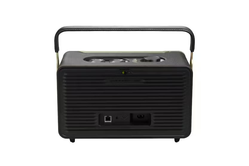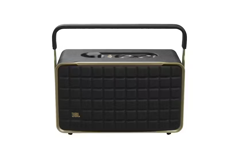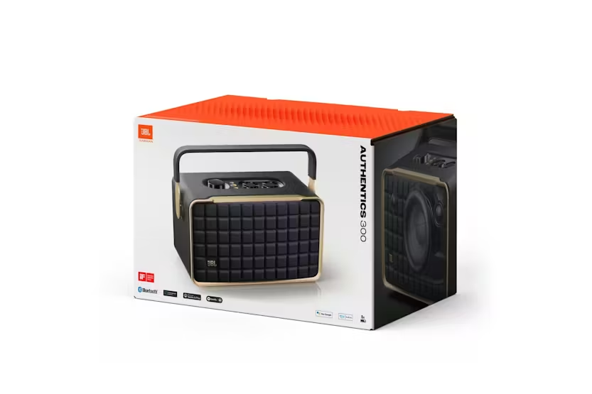 Description Check out the video: Retro Style and Superior Sound that go Great Together—Anywhere Enjoy retro style, amazing audio, and built-in dual voice assistants* anywhere in your home. With the JBL Authentics 300 speaker's leather-like enclosure, convenient metal handle, and built-in rechargeable battery, you can take your music with you—from the kitchen for your dinner-prep playlist to the bedroom for your wind-down podcast. Its retro '70s-inspired design featuring the iconic Quadrex grille makes a bold statement anywhere you set it down. And so do its wide soundstage, crystal-clear highs, and deep bass. With Google Assistant and Amazon Alexa available simultaneously*, you can play your favorite music, control your smart home devices, and more, hands-free, using just your voice. Check out the video: Superb Sound and Performance Fill any room in your house with stereo sound. A pair of 25mm tweeters bring out the details in your music, while the full-range 5.25-inch woofer and down-firing 6.5-inch passive radiator deliver deep bass. These top-grade components ensure you'll get the perfect audio balance, no matter what kind of music you're listening to. Inspired by Retro Design The JBL Authentics 300 delivers iconic style inspired by classic JBL retro designs, in a portable home speaker that looks great in any decor. It will easily fill any space, big or small, with superior JBL sound. And the speaker's convenient cast-aluminum handle, custom leather-like enclosure, and reimagined Quadrex grille really show the attention we paid to each visual detail, right down to the special JBL signature pattern on the down-firing passive radiator. Built-in Battery Keep the music going with up to 8 hours of playtime from a built-in battery and an integrated carrying handle that makes it easy to take your audio anywhere. Music Streaming Services Via Built-in Wi-Fi Experience everything from podcasts to internet radio in stunning high definition. Or stream music through AirPlay, Alexa Multi- Room Music (MRM), Chromecast built-in, and Spotify Connect and leave the room or take a call without the music being interrupted. The Wi-Fi connection ensures your speaker gets automatic software and feature updates. Voice Assistants*, Simultaneously on One Device Google Assistant and Amazon Alexa are available simultaneously* and gives customers the most freedom and convenience to control more smart home devices, play from more music streaming services, and get the most hands-free help from either voice assistant at any given time. *See Notifications. Seamless Bluetooth Pairing Seamlessly share playlists by pairing the JBL Authentics 300 with any Bluetooth devices. Intuitive Controls a JBL One App Personalize your audio with intuitive on-speaker controls that adjust volume, bass, and treble levels. Use Alexa or Google Assistant to control your device with your voice. Or use the JBL One app for even more options to customize EQ, settings, and find your new favorite song using the integrated music services. Multi-Room Playback Place multiple JBL Authentics speakers throughout your home for your next gathering. Using the Google Home app or Amazon Alexa app, you can set the mood in every room by connecting two or more speakers to a single playlist and get everybody moving to the same beat. Automatic Self Tuning Get great sound anywhere you want. The speaker automatically calibrates and optimizes audio performance for every location each time you power it up. Made in Part With Recycled Materials The Authentics 300 speaker is made with 100% recycled fabric, 85% recycled plastics and 50% aluminum, and comes in a FSC-certified carton box printed with soy ink. *Amazon Alexa and Google Assistant may not be available in all countries or languages. Features and functionality may vary. ©2023 Amazon.com, Inc. or it’s affiliates. Amazon, Alexa, and all related marks are trademarks of Amazon.com, Inc. or its affiliates. Google, Chromecast built-in, and Google Home are trademarks of Google LLC. Availability of Dolby Atmos Music may depend on subscription plan. Includes: 1 x Power cable Product Features: Superb sound and performance Inspired by retro design Built-in battery Music streaming services via built-in Wi-Fi Voice assistants*, simultaneously on one device Seamless Bluetooth pairing Intuitive controls and JBL One app Multi-Room Playback Automatic self-tuning Made in part with 100% recycled fabric, 85% recycled plastics, and 50% aluminum