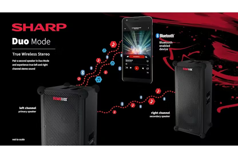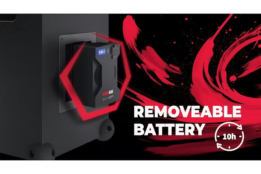 Description Introducing the SHARP SCP-LS100, a 120W SumoBox Portable Speaker, revolutionising the world of home audio spectacles. Tailored designed for serious music lovers, this high-performing Sharp speaker is a heroic addition to our TELEVISION & AUDIO group, falling sleekly into the category of outstanding HI-FI, AUDIO & SPEAKERS equipment. Boasting a reach of 105dB, the formidable SHARP SCP-LS100 SumoBox marvellously supervises sound, uplifting every beat and note with stunning lucidity and finesse. The powerful speaker system featuring 2 x 8" woofers and 2 x 2" tweeters delivers a ground shaking 120W RMS, providing an encompassing and rich audio experience whether you're hosting a party or enjoying a flick indoor movie theatre style. The product comes with 3 input channels pro-panel allowing refined adjustments of Reverb, Bass & Treble alongside convenient Aux and Bluetooth capabilities for straightforward control. The featured Duo Mode offers ability to pair 2 Sumobox Speakers for an immersive True Wireless Stereo (TWS) left and right channel sound. The SHARP SCP-LS100 has been ingeniously designed by keeping your needs in mind with an easily removable 14.8V 5Ah Lithium-ion battery included, guaranteeing instant pleasure up to 10 hours. Grab a spare battery pack (sold separately) or connect to the mains supply for limitless enjoyment. SAM® by Devialet featured in the speaker ensures impeccable linearity and standout low-frequency performance. Boasting the XLR/TRS 6.3mm combo inputs you will find it easy and quick to connect multiple instruments, creating a perfect harmony for a unique audio sensation. Main Body Colour: Black Unit Size (W x H x D in mm): 310 x 630 x 268 Playtime Battery (h): Up to 10 hours Speaker Power (W): 120 (RMS) Built-In Battery Type: Lithium-Ion (removable battery) Included in this exquisite setup is a dedicated Link to link 2 or more SumoBox together via the amplified Speaker Link functionality to encapsulate the perfect audio arena for your space. Whether you're belting out classics or jamming to contemporary hits, the SHARP SCP-LS100 is the ideal choice for a superior Bluetooth speaker experience.