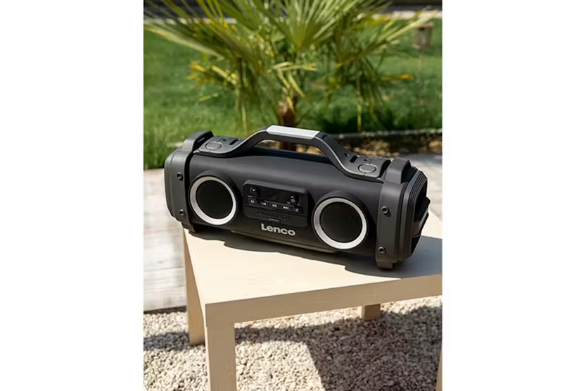 Description ONLINE ONLY Discover the incredible power and total convenience of the LENCO SPR-200BK IPX4 Portable High Power Radio. As a leading creation from distinguished brand LENCO, it promises unrivalled audio performance and versatility. A dynamic speaker with a sleek design, Lenzo SPR-200BK delivers a punch with an impressive 50-watt output, marrying both form and function. It features Bluetooth® technology, allowing seamless streaming from any mobile device or tablet. Whether played through Bluetooth®, USB connection, micro-SD, or AUX-in, your music sounds rich and full, enhancing every beat to provide a stunning audio experience. This excellent speaker also integrates an FM radio function, making it your perfect companion both indoors and outdoors. Engineered with a portable boombox design, the SPR-200BK embodies an IPX4 splash proof rating for added assurance, meaning your music will keep playing even when exposed to light splashes. Furthermore, with its true wireless sound (TWS) function, you can connect two of these stellar speakers to double the power and pleasure of your favourite tracks. What sets the SPR-200BK apart from other Bluetooth speakers is its integrated reinforcement in the lower frequencies. Armed with a powerful subwoofer and exceptional bass adjustment capabilities, it is certain to satisfy the tastes of even the most discerning audiophile. Furthermore, this portable speaker carries a robust, rechargeable battery ensuring up to 14 hours of continuous playtime, coupled with an integrated lighting effect for an immersive audio-visual experience, making SPR-200BK the perfect partner for any party. The LENCO SPR-200BK comes with an added audio equaliser, allowing you to tailor your audio experience to fit your preference. Draped with a snug shoulder strap, this impressive piece of audio technology promises superior convenience on your musical journey. Main features: Portable Bluetooth® boombox design with a powerful 50-watt output TWS feature enabling the linking of two speakers wirelessly Multiple playback options: Bluetooth®, USB, Micro SD, AUX-in Built-in FM radio for access to your favourite stations IPX4 Splashproof and an audio equaliser Equipped with a built-in rechargeable battery offering 14 hours of usage An integrated handle for easy carrying and a rugged design for durability/li>