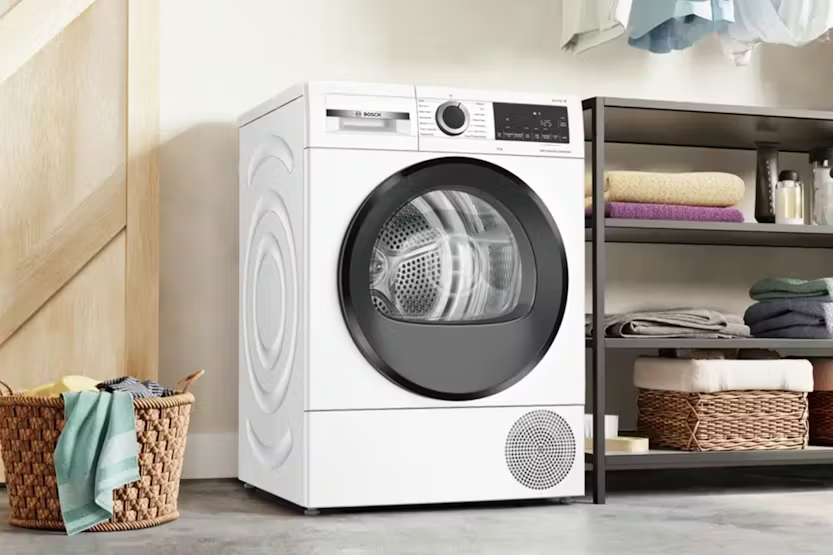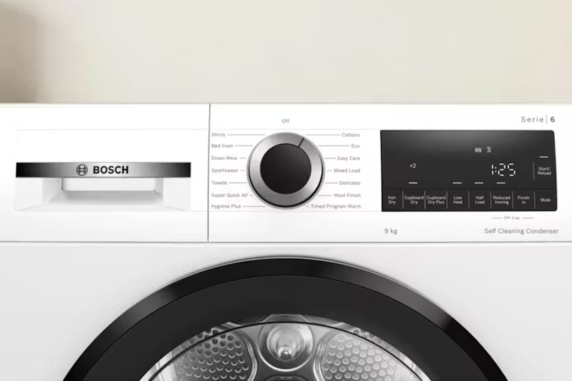 Description Automatic Fluff-cleaning Condenser Heat Pump dryers with Self-cleaning Condenser protect your clothing and remain highly energy efficient. Thanks to the Self-cleaning Condenser technology, the condenser is cleaned automatically, up to four times during the drying process, keeping top energy performance, cycle after cycle. Bosch’s heat pump dryers are designed to run efficiently and dry clothes gently and perfectly. Bed Linen Programme with Reversing Drum Stop bedding getting tangled in your dryer: Bosch dryers with the bed linen programme keep your sheets moving in different directions to prevent them from getting tangled together thanks to the large drum with a reversing drum system. This means that all your large and small items can be dried together with perfect drying results. Fast Drying for Smaller Loads With Bosch Super Quick 40 drying feature, you can now conveniently dry a small quantity of synthetics and thin fabrics in just 40 minutes. This time-saving option is perfect for those moments when you need your clothes quickly dried and ready to wear. Automatically Senses When Your Load is Dried Load up your laundry and Auto Dry will finish it to the exact level of dryness you want – whether that's dry enough to iron or extra-dry and ready to fold. Its sensors constantly measure the temperature and moisture to protect your laundry from high temperatures and over-drying. Get the perfect dry every time Extremely Quiet and Durable Bosch innovative Anti Vibration side walls have been specially designed to provide more stability and reduce vibrations. The enhanced insulation also regulates noise levels, making Bosch dryers extraordinarily quiet. Optimises the Drying Settings (load and duration) for Small Loads The Half Load option optimises the settings specifically for smaller loads. This feature allows you to efficiently dry your clothes without wasting energy or time. By automatically adjusting the drying parameters, Bosch's tumble dryers ensure that even half loads receive the same level of care and attention as full loads. Fabric-friendly Drying The Sensitive Drying System cares for your clothes by introducing mild, warm air from all sides. Meanwhile, the soft, curved paddles inside the drum ensure your clothes never lie flat, to avoid creasing. The result: perfectly dried, soft and fluffy clothes, free from creases. No More Creases We know how much of a hassle ironing can be. That's why bosch tumble dryer comes with an Anti-crease feature. It gently loosens your laundry once the program is finished, preventing wrinkles from setting in. So, you can enjoy more free time and less time ironing. Gentle Treatment for Your Sportswear Sportswear textiles are designed to offer the best performance while you work out. The technical nature of these textiles requires special care, which is why Bosch has developed a specific sportswear programme. Gentle drum movements and lower heat help protect your gear. Interior Drum Light With the Interior Drum Light, you have full view inside your washing machine thanks to the illuminated drum. Product Features: Door hinge: Right Time program warm Water drainset accessory Exhaust water pipe Length electrical supply cord: 179.5 cm Adjustable drying temperature Anti-vibration walls Sportswear programme Shirts / blouses programme Delicates cycle: Gentle Anti vibration design: Extremely stable and extraordinarily quiet thanks to special vibration protection Read More