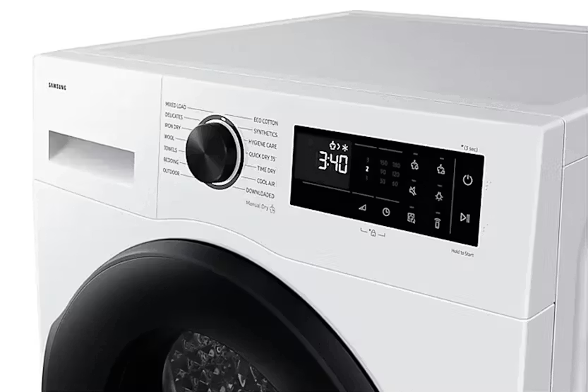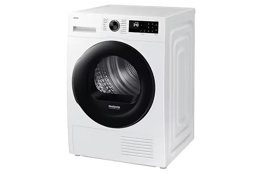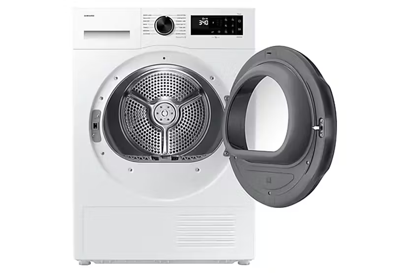 Description Up to 99.9% Sanitization**: Hygiene Care Reduce bacteria and allergens on clothes and other items. A Hygiene Care cycle sanitizes both dry and wet items* without affecting the drying performance. By infusing them with high temperature heat while drying it removes 99% of certain bacteria** and reduces house dust mites and allergens***. * 2kg dried laundry or 4kg wet laundry.** Based on the Intertek test report for the Hygiene Care course. Removes 99.9% of Staphylococcus aureus, Escherichia coli and Pseudomonas aeruginosa. Individual results may vary. This function is for cotton and linen fabrics only. Using it for other types of fabrics may damage your garments.*** Allergy UK considers that this product will, in proper use, reduce exposure to live house dust mites and pollen. Opens How You Want: Reversible Door Choose the direction that the reversible door opens to suit the layout of your home. Simply change which side it opens to fit the location, what is around it and how you do things. So appliances can open the same way or in opposite directions. It also means that walls won’t get in the way! How to Measure Fits in Efficiently Check out the video: Fits Your Kitchen: SpaceMax Enjoy a huge 11kg capacity in a 600mm depth cabinet that will fit into your home easily. SpaceMax technology creates more space inside to incorporate a large drum without increasing the external dimensions. It will align seamlessly with kitchen cabinets, but you can dry many clothes at once. Images are for illustrative purposes only. Check out the video: Up to 99.9% Sanitization***: Hygiene Care Prevent the build-up of bacteria on clothes and other items, like linen and children’s soft toys. The Hygiene Care cycle sanitizes* both dry and wet items** without affecting the drying performance. By infusing them with high temperature heat while drying it eliminates 99.9% of bacteria***. * Based on the Home Appliance Research Institute test report for the Hygiene Care cycle. It considers that this product will, in proper use, eliminate up to 100% of house dust mite and virus.** 2kg dried laundry or 2kg wet laundry.*** Based on the CVC test report for the Hygiene Care cycle. Individual results may vary. Saves Up to 20% Energy**: SmartThings AI Energy Mode Monitor and reduce your dryer’s energy use. AI Energy mode* lets you check its power consumption and estimates your electricity bill. For cycles that operate in AI Energy mode, it reduces energy use by up to 20%** by lowering the temperature and increasing the cycle time to dry thoroughly. * Available on Android and iOS devices. A Wi-Fi connection and a Samsung account are required. ** Based on internal testing on the DV17B9750CV/ST model in normal usage conditions. Results: Power consumption in Normal mode = 0.980 KWh. Power consumption with AI Energy mode = 0.780 KWh, which is a saving of 20.4%. Results may vary depending on the actual usage conditions. Uses Less Energy*: Heatpump Technology Save money by using less electricity*. Heatpump technology offers an energy-efficient, cost-effective and gentle way to dry clothes. It uses ‘refrigerant’ instead of electricity to heat the air and recycles warm air to avoid wasting energy, reducing its running costs and your electricity bills. * Tested in accordance with IEC 61121:2013/8kg Wash load/Cotton Cupboard with Heatpump (DV80F5E4HGW) vs. without Heatpump (DV80H4100CW). Individual results may vary. Check out the video: Convenience Wrinkle-free clothes: Wrinkle Prevent Keep dried clothes wrinkle-free without ironing. Simply select Wrinkle Prevent and, once the drying cycle ends, it will intermittently turn the drum with no heat for up to 180 minutes. It prevents clothes from resting in one place for too long while hot, so creases don't form in the fabric. Product Features: Smartthings app support Wrinkle prevent WiFi embedded Mixed load bell / Damp alert Drum material: Stainless Drying rack Read More