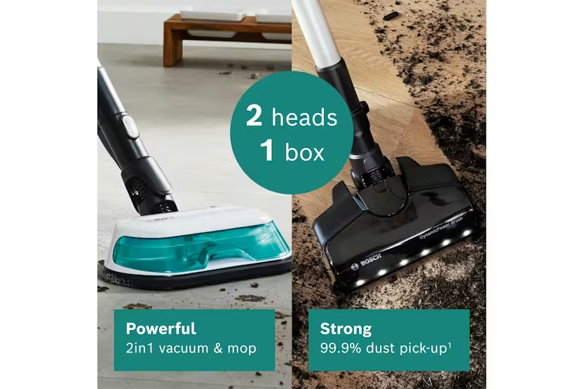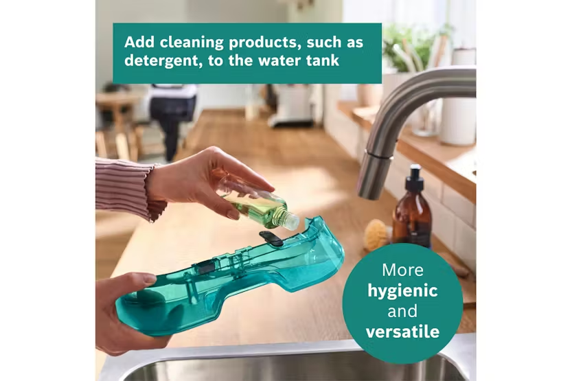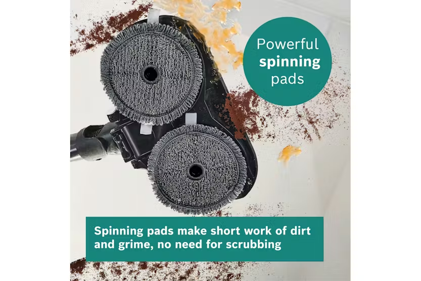 Description Vacuum And Mop: Don'T Clean Twice The Unlimited 7 Aqua combines vacuuming and mopping in one appliance to save you time and effort, avoiding the need to clean twice. The 2in1 DynamicAqua Mop has high power in the suction channel that removes dust and loose dirt while the two Power Spinning Pads, which are automatically supplied with fresh water, wipe away even stubborn stains. Simply switch to the AllFloor Dynamic Power Brush that comes in the same box when you want to do dry or carpet cleaning. Cleans Stubborn Stains: Moistened Pads Spin At 200 Rpm For Thorough Cleaning Designed to actively remove stubborn stains, the Aqua comes with special microfibre Power Spinning Pads with up to 200 rotations per minute (rpm). The soft fabric is effective yet gentle to ensure clean floors, even on hard surfaces. Automatic Water Supply: The Right Amount For Almost Any Type Of Hard Floor A pump built into the Aqua nozzle provides water to the spinning cleaning pads. By automatically dosing water every 20 seconds, the Unlimited 7 Aqua ensures the pads are wet enough for thorough, effective cleaning. With the Water Control Button you can adjust it to any situation. For more water, to remove particular stubborn stains, press the button for 3 seconds. To stop the Automatic Water Supply system, press the button once. The floor dries in next to no time as the spinning cleaning pads don't need to use as much water as a traditional mop. Clean The Most Awkward Places: Thorough Cleaning On All Floors Reach under furniture, into corners or along edges with ease, thanks to the flexible tube and 180° compact head. You can clip the vacuum on furniture or the back of a chair, freeing up your hands to move rugs or clear space for those deep cleans. More Hygienic And Versatile Than A Traditional Mop: Easy Maintenance You can add cleaning products, such as detergent, to the water tank. No need to wring out the spinning pads into a dirty water bucket, like you would with a mop. Easily clean the spinning pads in the washing machine at 40⁰C and reuse. Thanks to the special tags on the mopping pads, the pads can be removed and put into the washing machine without you having to touch them. 99.97% of fine dust and allergens3 are removed by HEPA Filtration System filters2, perfect for those with allergies or sensitive noses! Two Heads In One Box: Motorized Brush With LED Lights And Anti-Hair Tangle For dry vacuuming, simply switch to the AllFloor Dynamic Brush. Enjoy optimal cleaning results on all floors and surfaces and even in the darkest places. With the powerful motorized brush, you can achieve dust pickup of more than 99.9% 1 . Thanks to the powerful built-in LED lights, you can spot and remove dirt and dust even in hard-to-see places like behind furniture or in dark corners. Plus, you can pick up 30% more dust on carpets. 2 So you can feel comfortable in a clean home in no time. Read More