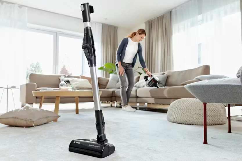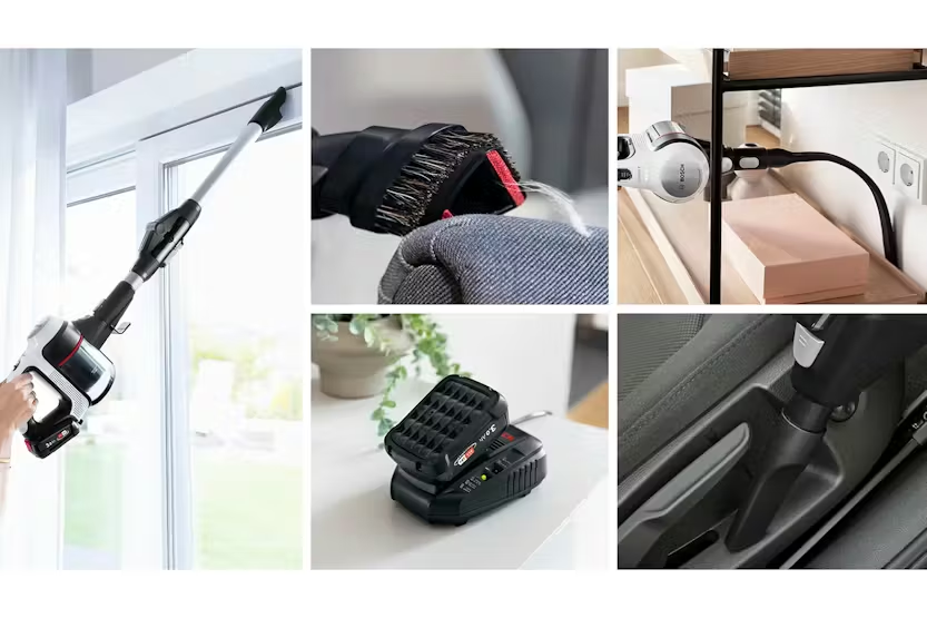 Description Ergonomic Features For High Convenience And Flexibility Enjoy more versatility! The convenient Flex Tube makes it possible to reach places under low furniture effortlessly, the Easy Parking Clip lets you securely hold the tool in place during breaks, and the Quick Stand allows flexible cleaning with the handheld while the nozzle and tube stand by themselves. With the Nozzle Foot Release you can detach the nozzle from the tube without bending over to easily switch to spot cleaning with the practical tube. This makes the Unlimited 7 perfect for cleaning all types of floors and surfaces, as well as hard-to-reach areas. Enjoy 33 % More Runtime For Up To 100 Sqm With the powerful and enduring 3.0 Ah Power For All battery from Bosch, even demanding cleaning tasks can be mastered effortlessly. The lithium-ion battery is rechargeable, exchangeable and protected against overheating, overcharging, self-discharge and memory effect. In addition, the battery offers 33% more runtime⁷, ensuring powerful performance and long runtimes. So you can clean up to 100 m² with just one battery charge⁸ - without interruptions and without worrying about time-consuming recharging. Motorized Brush With Led Lights Enjoy optimal cleaning results on all floors and surfaces and even in the darkest places. With the powerful motorized brush, you can achieve dust pickup of more than 99.9%⁴. Thanks to the powerful built-in LED lights, you can spot and remove dirt and dust even in hard-to-see places like behind furniture or in dark corners. Plus, you can pick up 30% more dust on carpets⁵. So you can feel comfortable in a clean home in no time. Bosch Motor Technology – Quality Made In Germany Enjoy powerful, constant performance with Bosch vacuum cleaners: Developing and producing our high-performance motors in Germany for over 80 years, we not only expect a vacuum cleaner to deliver optimal results but also to be long-lasting. Which is why we provide a 10-year motor guarantee***. Park The Device Carefree During A Short Break You no longer have to put the device back in the docking station or lay it on the floor when you want to take a break. Thanks to the Easy Parking Clip, you can effortlessly place the device anywhere - on the edge of furniture, such as a table or shelf, or on the back of a chair. No worries. Plus, the clip's special surface prevents scratches and slippage. The vacuum cleaner is securely fixed in place, ready to go on whenever you want. Power For All Alliance. One Battery For Your Entire Home Most devices have different batteries, which can be expensive. The exchangeable batteries are part of one of the largest cross-brand 18V battery systems. They are compatible with many 18V power tools and gardening devices from Bosch and other brands e.g. Gardena, Gloria, Wagner and Rapid. Automatically Optimised Performance And Runtime Thanks to the patented Bosch smart battery detection technology, our cordless vacuum cleaner can recognize the battery type you choose, automatically optimising performance to fit either the removal of difficult dirt, or to mazimise runtime over large distances. Just the tool you need for every challenge. Easy Emptying Of Dustbox And No Filter Washing Emptying the dustbox should be hygienic and worry free. You can empty the box without creating a dust cloud and can clean the filter without washing. Simply remove the dustbox, turn the red wheel and empty it directly into the bin. Save Time Thanks To Up To 3X Faster Charging Now you can vacuum a whole house without worrying about time-consuming charging. Our fast charger works up to three times faster than the docking station⁹ and allows extra fast charging of the batteries. This saves you a lot of time, because you no longer have to wait until your vacuum cleaner is charged - it is always ready for use. It is also compatible with all 18 V batteries from Bosch Home & Garden and other Power For All Alliance brands. Fast And Easy Filter Cleaning Filter washing is extra effort. Thanks to RotationClean, you can clean the filter instantly and hygienically. Simply remove the dustbox and turn the red wheel. All the dust and dirt is released with minimum contact. It’s fast and easy filter cleaning without washing Additional information: Type: Unlimited Special purpose: For every-day requirements 10 years motor guarantee: Yes Auto mode: Yes Number of batteries: 2 Charging time: 1 h Quick charger: Yes Battery capacity: 3 Nominal voltage battery pack: 18.0 V Noise level: 82 db(a) re 1 pw Filtration system: Bagless Contents, dust container: 0.3 l Included accessories: 1 x crevice nozzle, 1 x charging cable, 1 x quick charger, 2 x exchangeable battery pack, 1 x docking station, 1 x 2in1 furniture brush & upholstery nozzle, 1 x long flexible crevice nozzle Carpet brush: Electric Performance: Turbospin motor: Made in germany with free 10 years motor guarantee Power for ALL System: The battery pack is also part of the 18-volt cordless system from Home & Garden Auto mode: the nozzle adjusts the performance depending on floor type: carpet or hard floor. Top runtime & performance solution depending on what is needed for perfect cleaning results Extended runtime: exchangeable battery pack enables you to extend the runtime if necessary Intuitive 3-step power mode selection to cover all cleaning situations: Eco mode: extensive runtime for longer cleaning. auto mode: top runtime & performance solution with automatic power adjustment. turbo mode: ultimate performance for optimal cleaning results. Made in Germany: High quality standards and thorough testing for enduring satisfaction Hygiene: Filter cleaning: Easy filter cleaning with rotationclean - no washing needed Easy to remove and empty 0.3 l dust container 0.9 litre usable capacity Comfort: Cleaning on all levels: Thanks to multiple accessories, you can clean up every kind of dirt, from the floor to the ceiling – even in your car. Easy storage: docking station for convenient st