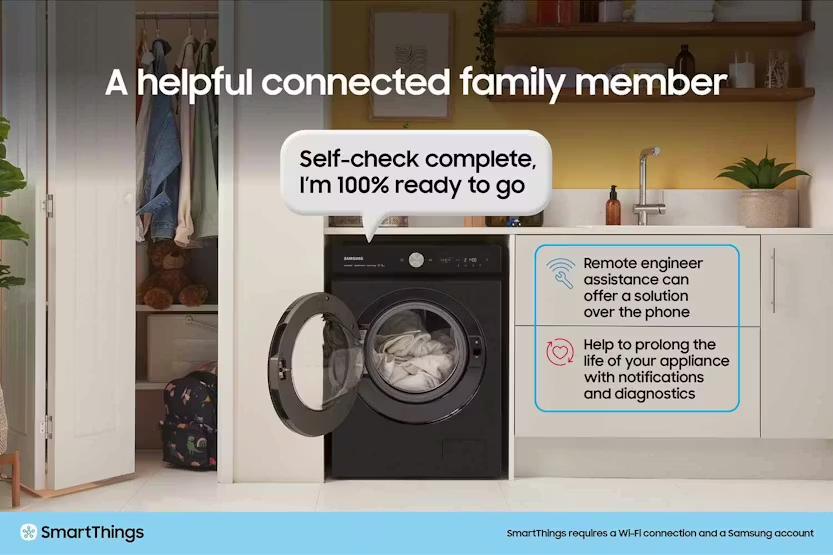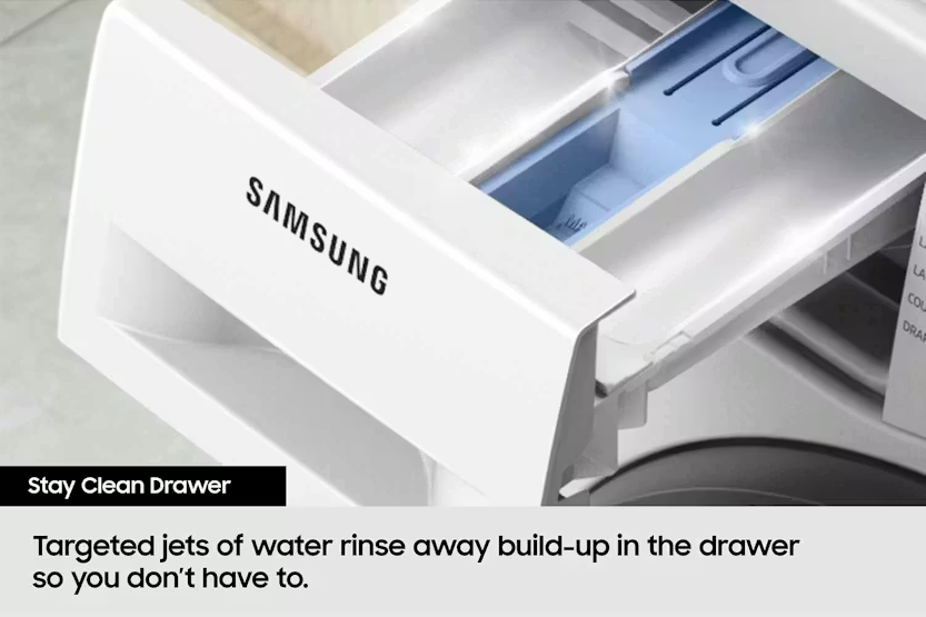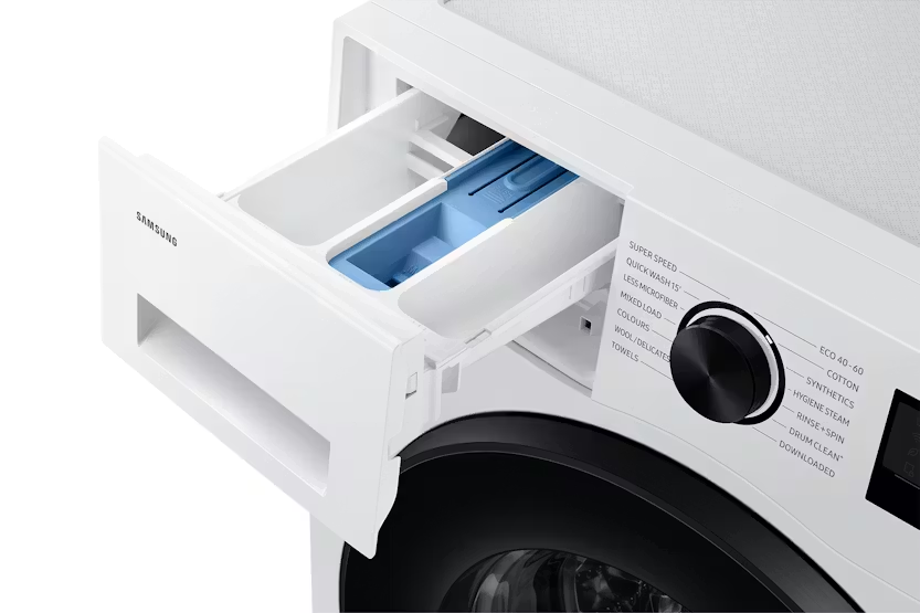 Description Wash Intelligently Check out the video: Smart Energy Savings: Smartthings AI Energy Mode Monitor and reduce the washer’s energy use. AI energy mode* lets you check the power consumption and estimates your electricity bill. For courses that operate in ai energy mode** it reduces energy use by up to 70%*** using ecobubble to wash with cool water instead of warm and extra cycle time. * Available on Android and iOS devices. A Wi-Fi connection and a Samsung account are required.** Can be applied when the selected washing temperature is 20~40°C.*** Based on internal testing on the WW11BB944AGB model in normal usage conditions.Results: Power consumption without AI Energy Mode = 0.539 KWh. Power consumption with AI Energy Mode = 0.145 KWh. Results may vary depending on the actual usage conditions. Energy Efficient: Grade A Energy Efficiency Save energy but still wash clothes effectively. Under new european energy labelling, it has the highest energy efficiency rating with a grade a energy label. Its advanced technologies intelligently enhance the washing performance while also reducing energy use without sacrificing functionality. * Based on Samsung internal testing. The WW5000F series models achieve the Class A energy efficiency rating under Regulation (EU) No 2019/2014. Results may vary depending on the usage environment. Check out the video: Smart, Gentle Washing: AI Ecobubble Make laundry less of a chore. Activated on cotton, synthetics and ai wash programs for up to 2kg loads, ai ecobubble detects the type of fabric and optimises the amount of bubbles, washing time, temperature and spin speed. Performance Wash in 39 Minutes: Super Speed Cut your daily laundry time and get clothes thoroughly clean. Use super speed to wash a load in just 39 minutes*. Quickdrive saves time by moving clothes dynamically, while ecobubble ensures powerful cleaning. The rinsing time is shortened using speed spray and it accelerates the spin speed. * Based on using Super Speed at the default settings with a 5kg load. Reduces Microplastic: Less Microfiber Cycle The less microfiber cycle works to make clothes shed less microplastics, which are discharged into the drain water. By adjusting the motor's revolution speed and washing intensiveness, the less microfiber cycle reduces the amount of microfiber released into the drain water by up to 54%*. * Based on testing by the Ocean Wise Plastics Lab using a 2kg load of 100% polyester hoodies, comparing the Synthetics cycle on a Samsung conventional model WW4000T and the Less Microfiber cycle on the WW7000B. Results may vary depending on the actual clothes and usage conditions. Intensive Cleaning: Bubble Soak Get your clothes spotlessly clean, even if they are really dirty. The bubble soak function helps remove a wide variety of stubborn stains, like blood, tea, wine, make-up and grass. Clothes are thoroughly soaked in active bubbles, so dirt and stains are loosened and can be removed effectively*. * Tested in accordance with IEC 60456 5th edition / 8kg Wash Load / Bubble Soak Wash vs. Cotton 40/60°C, Synthetic 60°C, and Denim 40°C without Bubble Soak. Do the Smartthings at Home Connect Your Life with Smartthings: Wi-Fi Embedded Use your washer easily and effectively with the smartthings app*, which enhances your washing. The laundry recipe recommends the appropriate wash cycle** for each load. The laundry planner enhances your daily schedule***. And auto cycle link**** selects an optimal drying course after a wash. * Available on Android and iOS devices. A Wi-Fi connection and a Samsung account are required. It stores user data, preferences and usage patterns to suggest the most useful options.** The user will be solely responsible for any consequence(s) that may result, including but not limited to any damage or harm caused by incorrect information provided by the user.*** The recommended washing cycle is only based on time and may not be appropriate for the type of fabrics or stain level of the articles being washed.**** A Wi-Fi connection is required at all times, which may increase energy consumption. Smatthings Energy: Efficient Energy Use, Smart Savings Manage your household's energy use anytime. Smartthings energy* provides helpful energy efficiency tips. It a lets you monitor the energy consumption of smart appliances** in real time and compare it to the previous month. And it alerts you if your monthly targets are likely to be exceeded. *A Wi-Fi connection and a Samsung account are required.** SmartThings Energy currently works with around 40 Samsung home appliances that are SmartThings enabled. These include washing machines, clothes dryers, dish washers, air conditioners, air purifiers, vacuum cleaners, ovens, hoods, cooktops, microwave, TVs (from June 2022) and energy meters. Smatthings Home Care: Smart Maintenance, Easy Upkeep Take care of your washer easily. Smartthings home care* notifies you when parts need replacing and helps troubleshoot problems. It also shows you how to update the software of services and devices. And it provides useful tips on using your appliance, as well as a user manual. * Available on Android and iOS devices. A Wi-Fi connection and a Samsung account are required. Hygiene Check out the video: Reduce Bacteria: Hygiene Steam Give clothes a deep and hygienic clean. Hygiene steam releases steam from the bottom of the drum. It removes grime and 99.9% of certain bacteria* and inactivates allergens derived from house dust mites**. Hygiene steam reduces exposure to house dust mite, cat, dog, grass pollen and fungi***. * Based on the Intertek test report for the Hygiene steam course. Removes 99.9% of Staphylococcus aureus and Escherichia coli. Individual results may vary.** Based on the Intertek test report for the Hygiene steam course.*** Based on The British Allergy Foundation (BAF) test report for the Hygiene Steam course, Allergy UK considers that this product will, in proper use, reduce exposure to house dust mite, ca