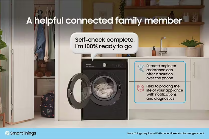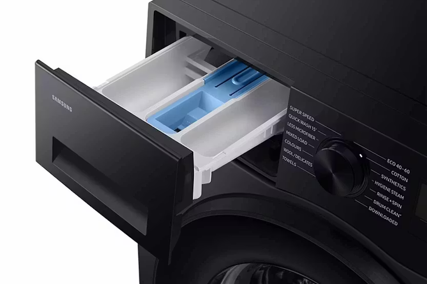 Description Wash Intelligently Check out the video: Smart Energy Savings: Smartthings AI Energy Mode Monitor and reduce the washer’s energy use. AI energy mode* lets you check the power consumption and estimates your electricity bill. For courses that operate in ai energy mode** it reduces energy use by up to 70%*** using ecobubble to wash with cool water instead of warm and extra cycle time. * Available on Android and iOS devices. A Wi-Fi connection and a Samsung account are required.** Can be applied when the selected washing temperature is 20~40°C.*** Based on internal testing on the WW11BB944AGB model in normal usage conditions.Results: Power consumption without AI Energy Mode = 0.539 KWh. Power consumption with AI Energy Mode = 0.145 KWh. Results may vary depending on the actual usage conditions. Energy Efficient: Grade A Energy Efficiency Save energy but still wash clothes effectively. Under new european energy labelling, it has the highest energy efficiency rating with a grade a energy label. Its advanced technologies intelligently enhance the washing performance while also reducing energy use without sacrificing functionality. * Based on Samsung internal testing. The WW5000F series models achieve the Class A energy efficiency rating under Regulation (EU) No 2019/2014. Results may vary depending on the usage environment. Check out the video: Smart, Gentle Washing: AI Ecobubble Make laundry less of a chore. Activated on cotton, synthetics and ai wash programs for up to 2kg loads, ai ecobubble detects the type of fabric and optimises the amount of bubbles, washing time, temperature and spin speed. Performance Wash in 39 Minutes: Super Speed Cut your daily laundry time and get clothes thoroughly clean. Use super speed to wash a load in just 39 minutes*. Quickdrive saves time by moving clothes dynamically, while ecobubble ensures powerful cleaning. The rinsing time is shortened using speed spray and it accelerates the spin speed. * Based on using Super Speed at the default settings with a 5kg load. Reduces Microplastic: Less Microfiber Cycle The less microfiber cycle works to make clothes shed less microplastics, which are discharged into the drain water. By adjusting the motor's revolution speed and washing intensiveness, the less microfiber cycle reduces the amount of microfiber released into the drain water by up to 54%*. * Based on testing by the Ocean Wise Plastics Lab using a 2kg load of 100% polyester hoodies, comparing the Synthetics cycle on a Samsung conventional model WW4000T and the Less Microfiber cycle on the WW7000B. Results may vary depending on the actual clothes and usage conditions. Intensive Cleaning: Bubble Soak Get your clothes spotlessly clean, even if they are really dirty. The bubble soak function helps remove a wide variety of stubborn stains, like blood, tea, wine, make-up and grass. Clothes are thoroughly soaked in active bubbles, so dirt and stains are loosened and can be removed effectively*. * Tested in accordance with IEC 60456 5th edition / 8kg Wash Load / Bubble Soak Wash vs. Cotton 40/60°C, Synthetic 60°C, and Denim 40°C without Bubble Soak. Do the Smartthings at Home Connect Your Life with Smartthings: Wi-Fi Embedded Use your washer easily and effectively with the smartthings app*, which enhances your washing. The laundry recipe recommends the appropriate wash cycle** for each load. The laundry planner enhances your daily schedule***. And auto cycle link**** selects an optimal drying course after a wash. * Available on Android and iOS devices. A Wi-Fi connection and a Samsung account are required. It stores user data, preferences and usage patterns to suggest the most useful options.** The user will be solely responsible for any consequence(s) that may result, including but not limited to any damage or harm caused by incorrect information provided by the user.*** The recommended washing cycle is only based on time and may not be appropriate for the type of fabrics or stain level of the articles being washed.**** A Wi-Fi connection is required at all times, which may increase energy consumption. Smatthings Energy: Efficient Energy Use, Smart Savings Manage your household's energy use anytime. Smartthings energy* provides helpful energy efficiency tips. It a lets you monitor the energy consumption of smart appliances** in real time and compare it to the previous month. And it alerts you if your monthly targets are likely to be exceeded. *A Wi-Fi connection and a Samsung account are required.** SmartThings Energy currently works with around 40 Samsung home appliances that are SmartThings enabled. These include washing machines, clothes dryers, dish washers, air conditioners, air purifiers, vacuum cleaners, ovens, hoods, cooktops, microwave, TVs (from June 2022) and energy meters. Smatthings Home Care: Smart Maintenance, Easy Upkeep Take care of your washer easily. Smartthings home care* notifies you when parts need replacing and helps troubleshoot problems. It also shows you how to update the software of services and devices. And it provides useful tips on using your appliance, as well as a user manual. * Available on Android and iOS devices. A Wi-Fi connection and a Samsung account are required. Hygiene Check out the video: Reduce Bacteria: Hygiene Steam Give clothes a deep and hygienic clean. Hygiene steam releases steam from the bottom of the drum. It removes grime and 99.9% of certain bacteria* and inactivates allergens derived from house dust mites**. Hygiene steam reduces exposure to house dust mite, cat, dog, grass pollen and fungi***. * Based on the Intertek test report for the Hygiene steam course. Removes 99.9% of Staphylococcus aureus and Escherichia coli. Individual results may vary.** Based on the Intertek test report for the Hygiene steam course.*** Based on The British Allergy Foundation (BAF) test report for the Hygiene Steam course, Allergy UK considers that this product will, in proper use, reduce exposure to house dust mite, ca